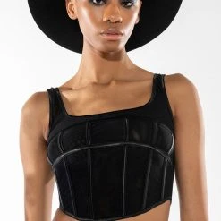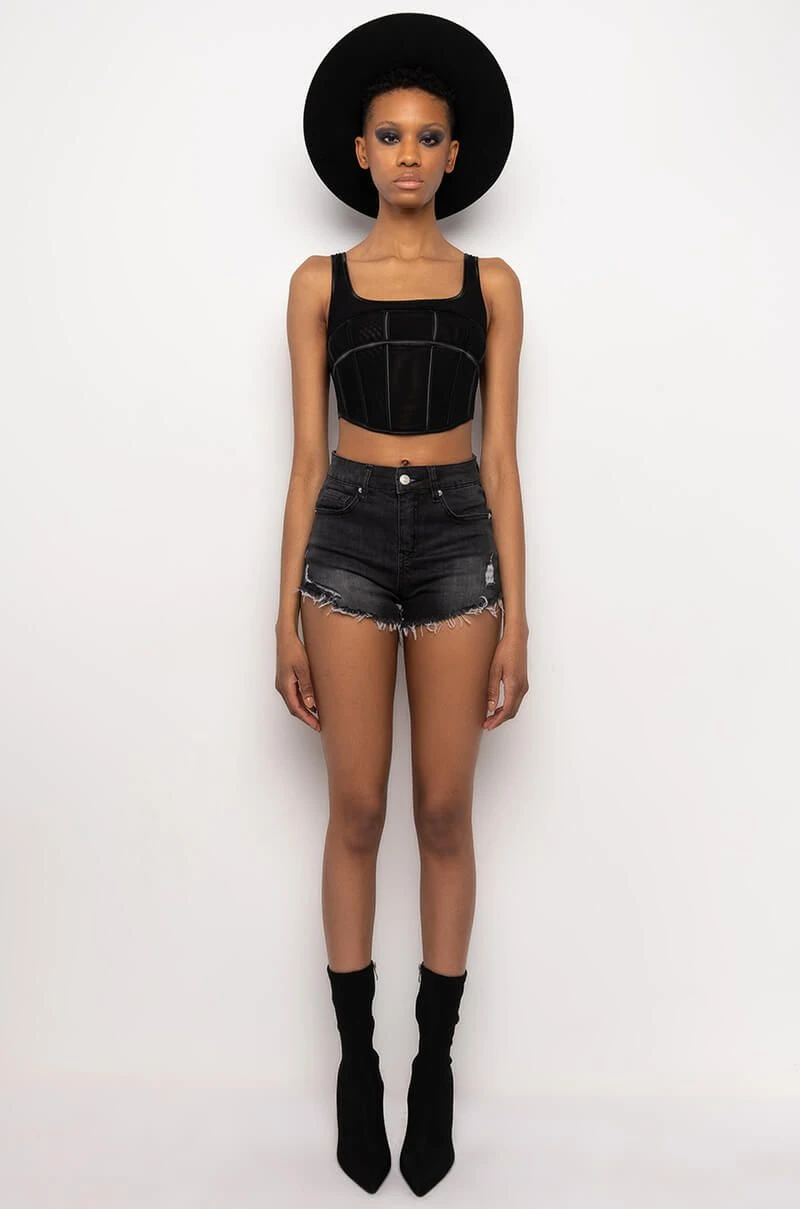 Keep all eyes on you in The AKIRA Label All On Me Corset Top! This cropped corset features a sheer mesh base, tank straps, satin-trimmed boning for structure, a pointed hem, and a back zipper closure. Pair this piece with fitted bottoms and patent pumps for a sexy going-out look.
