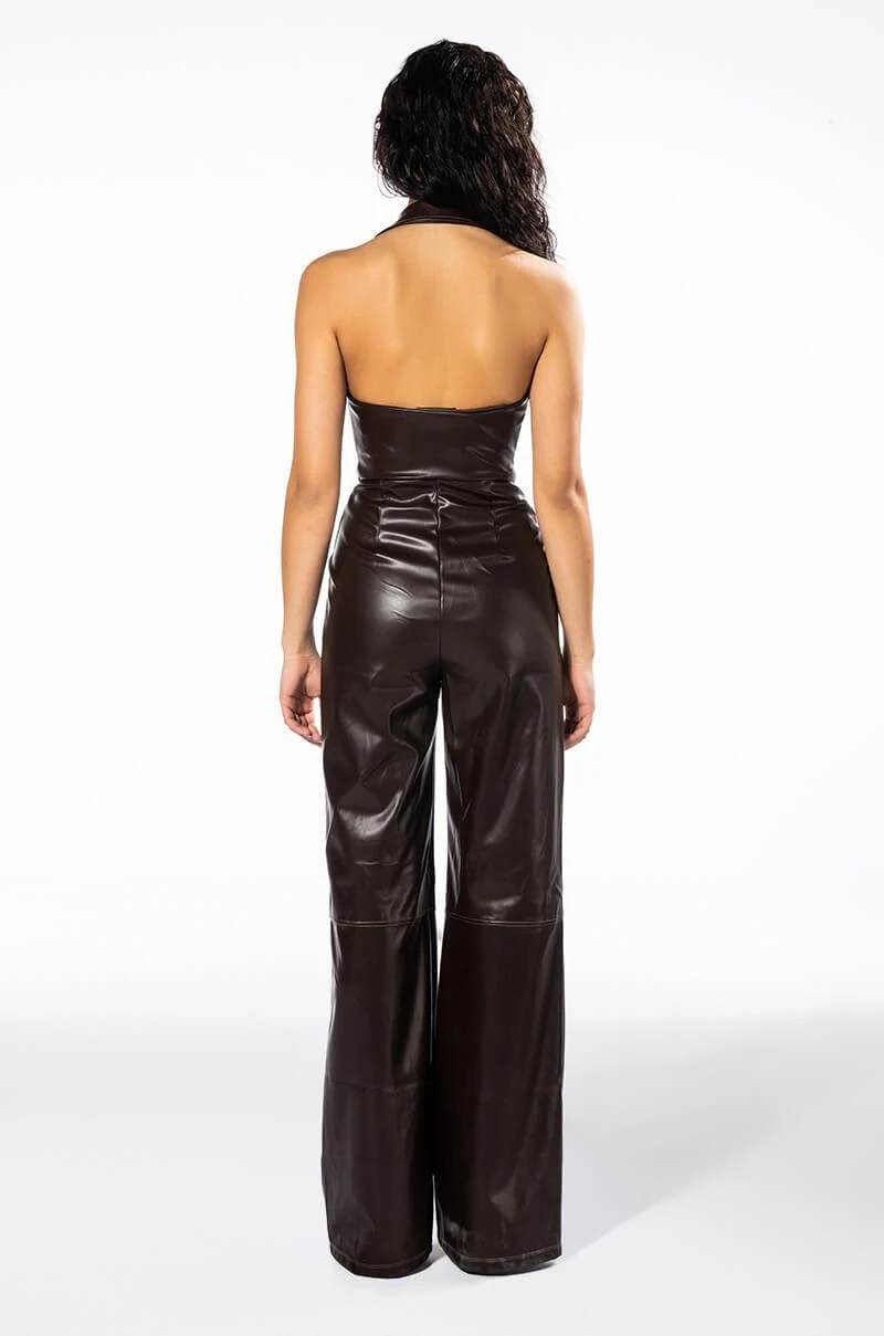 AMAYA SLEEVELESS FAUX LEATHER JUMPSUIT