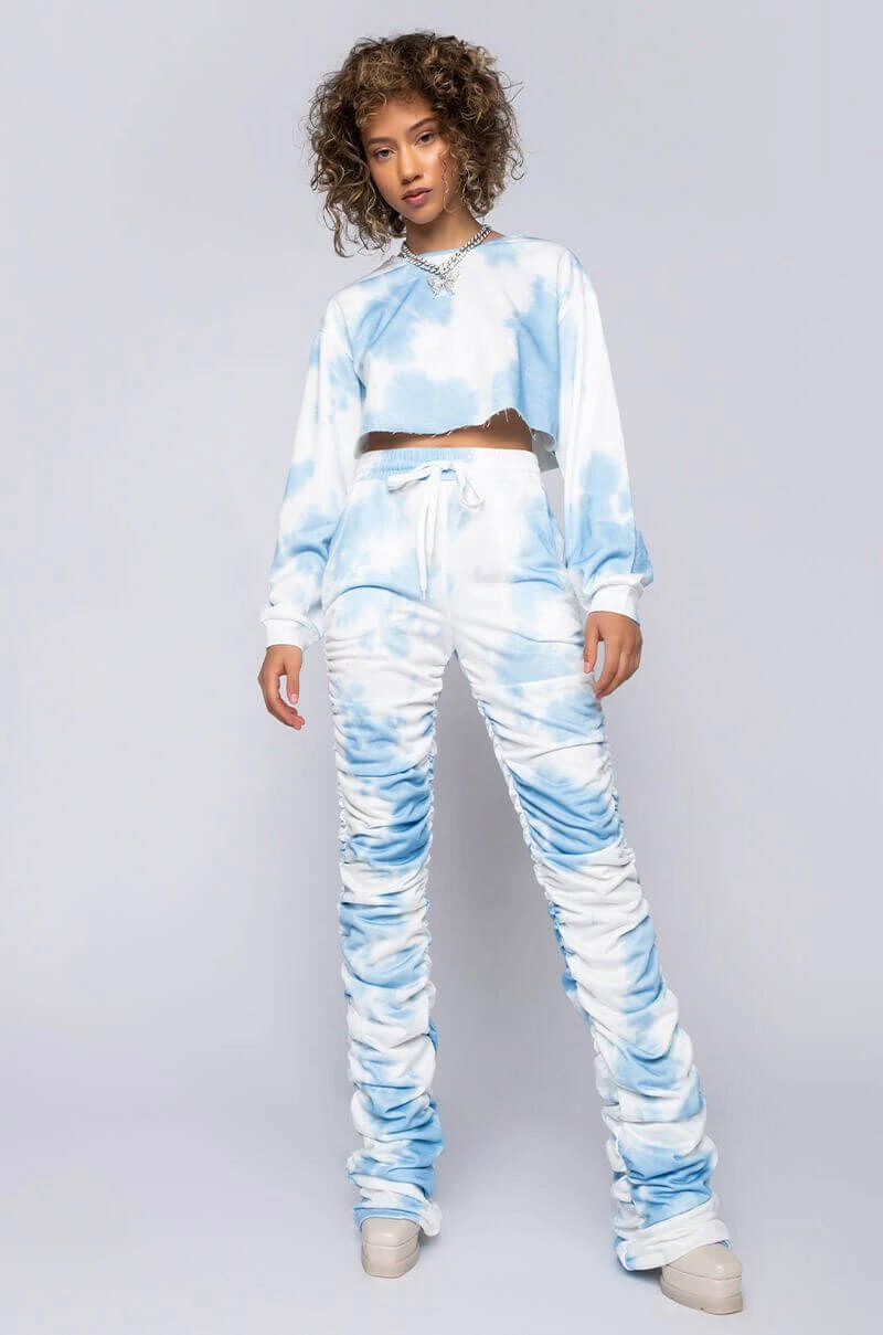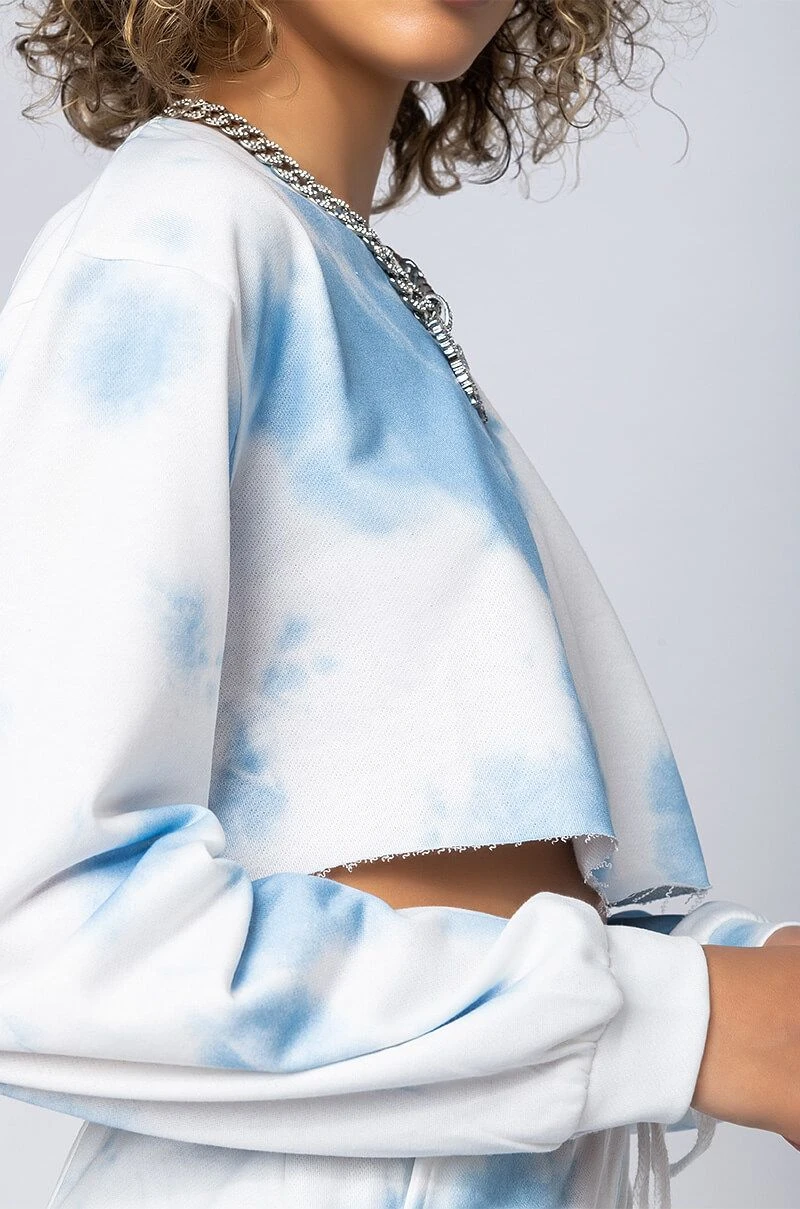 Hey Angel! Did it hurt when you fell? We’re in love with the AKIRA Label Angel Dust Sweatshirt! This sweater is made from a blue and white cloud print fabrication, and is complete with a cropped length, long sleeves, and a crew neckline. Style this heavenly piece with the matching AKIRA Label Angel Dust Stacked Jogger, and a pair of fuzzy faux fur and rhinestone slippers!