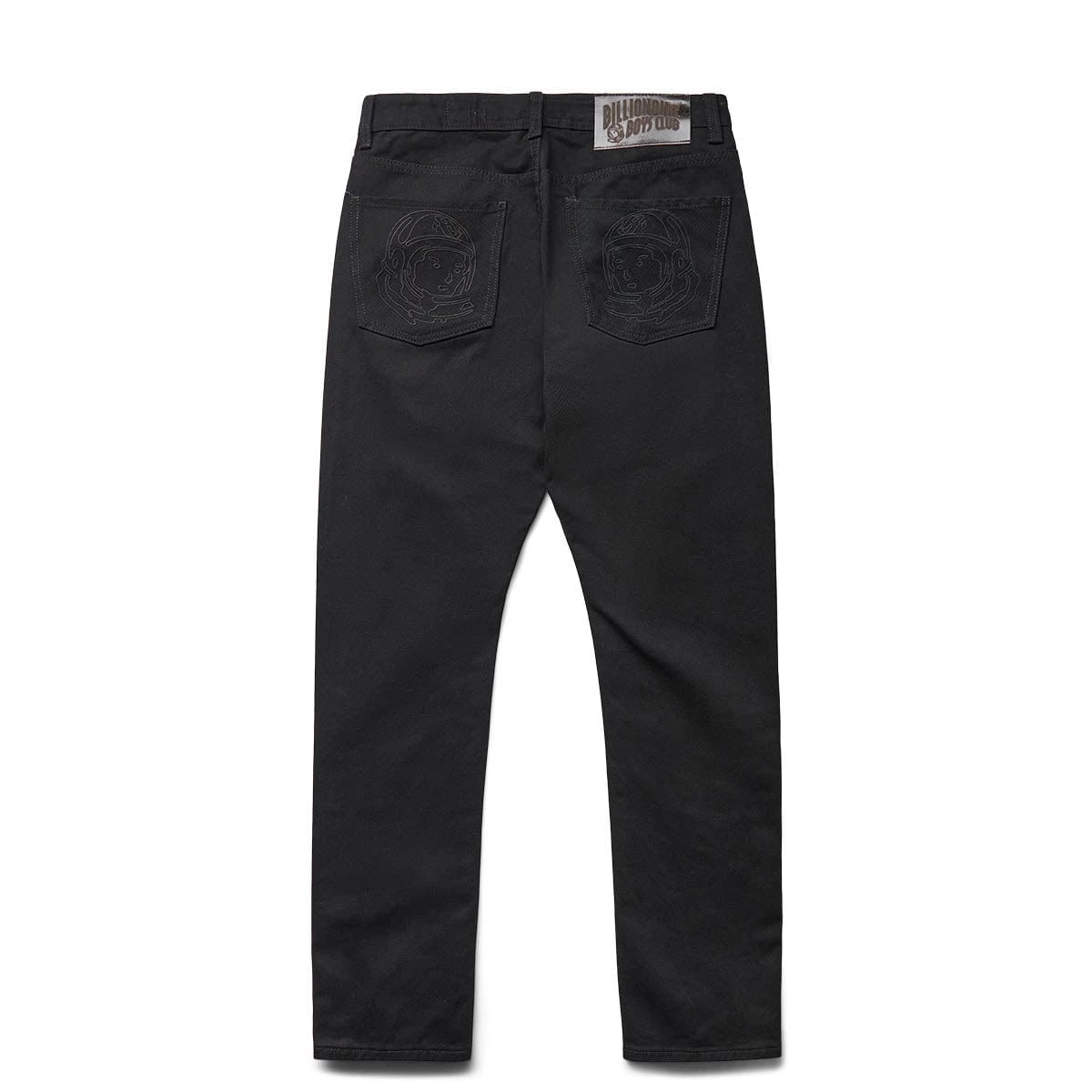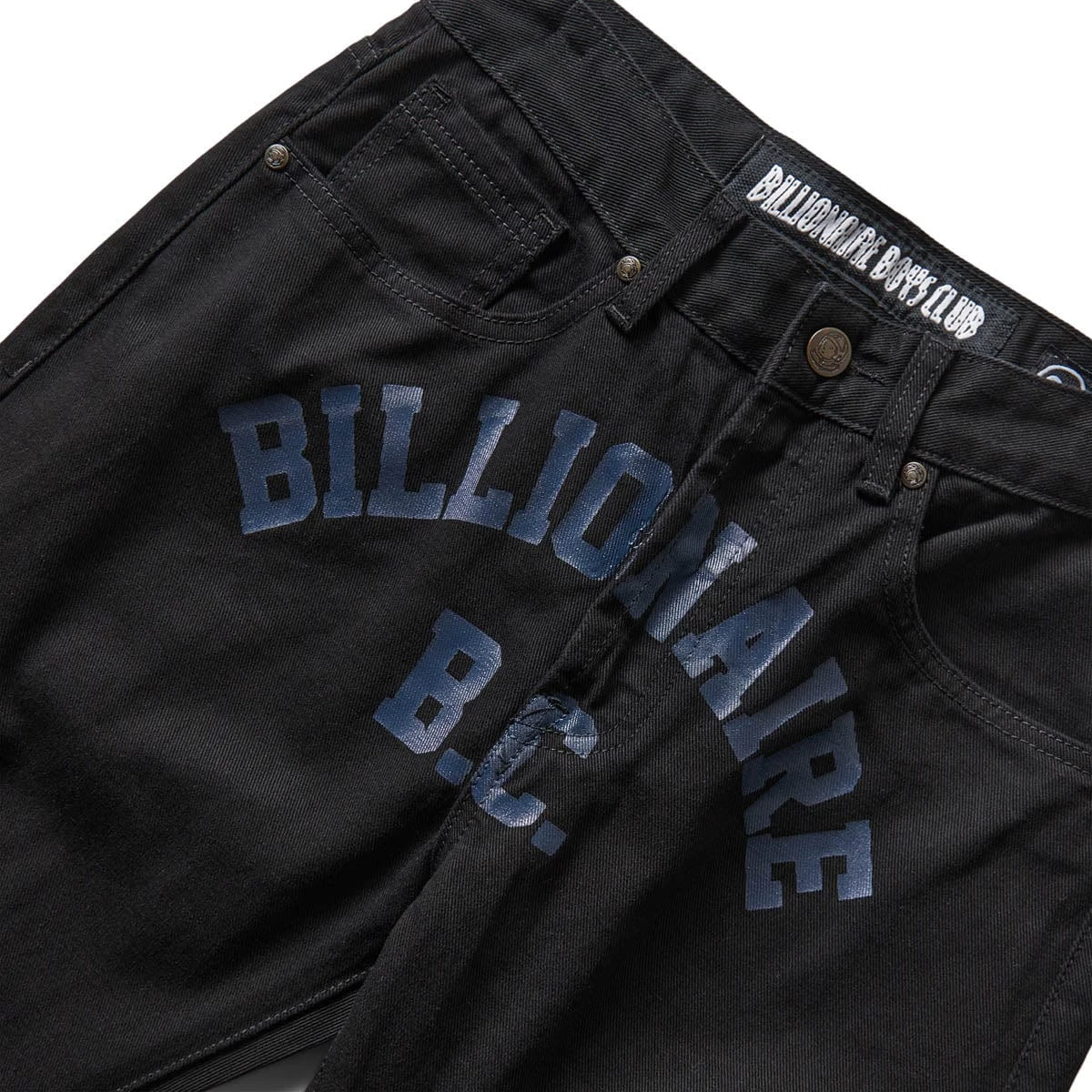 Pure cotton denim defines stylish jeans stamped with bold branding.