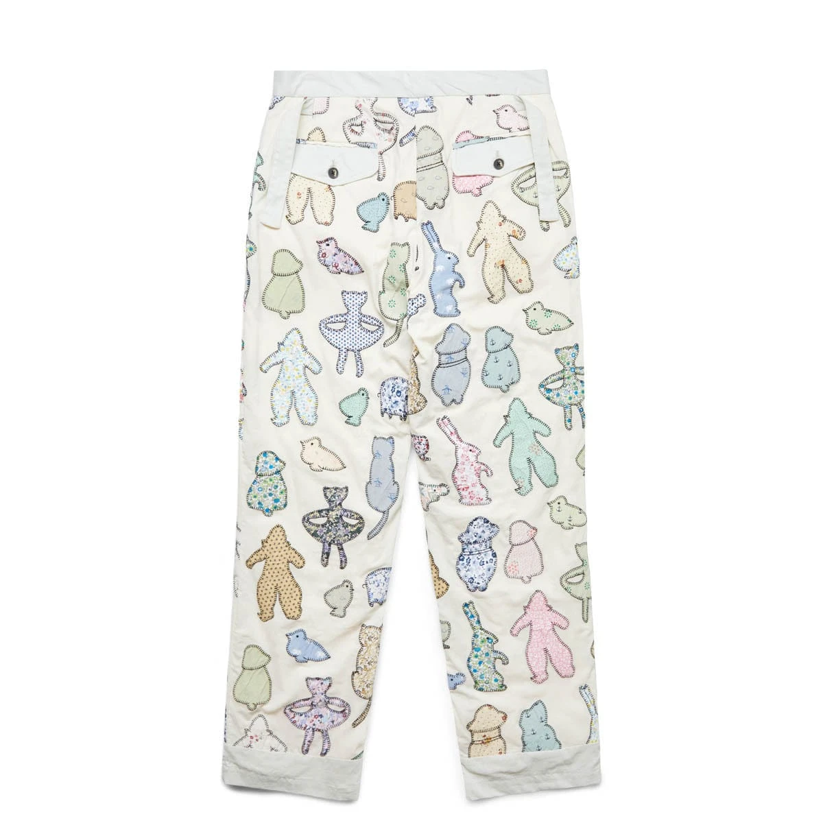 THESE TROUSERS ARE INSPIRED BY A CHILDREN’S QUILT FROM THE 1940S. THE ORIGINAL APPLIQUÉ ANIMAL PATCHES WERE CUT FROM PRINTED FEEDSACKS.Â
