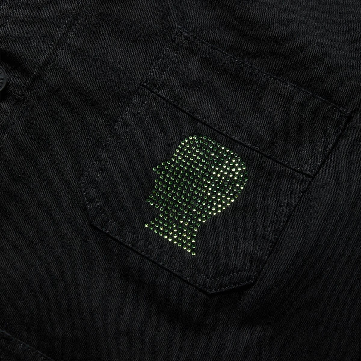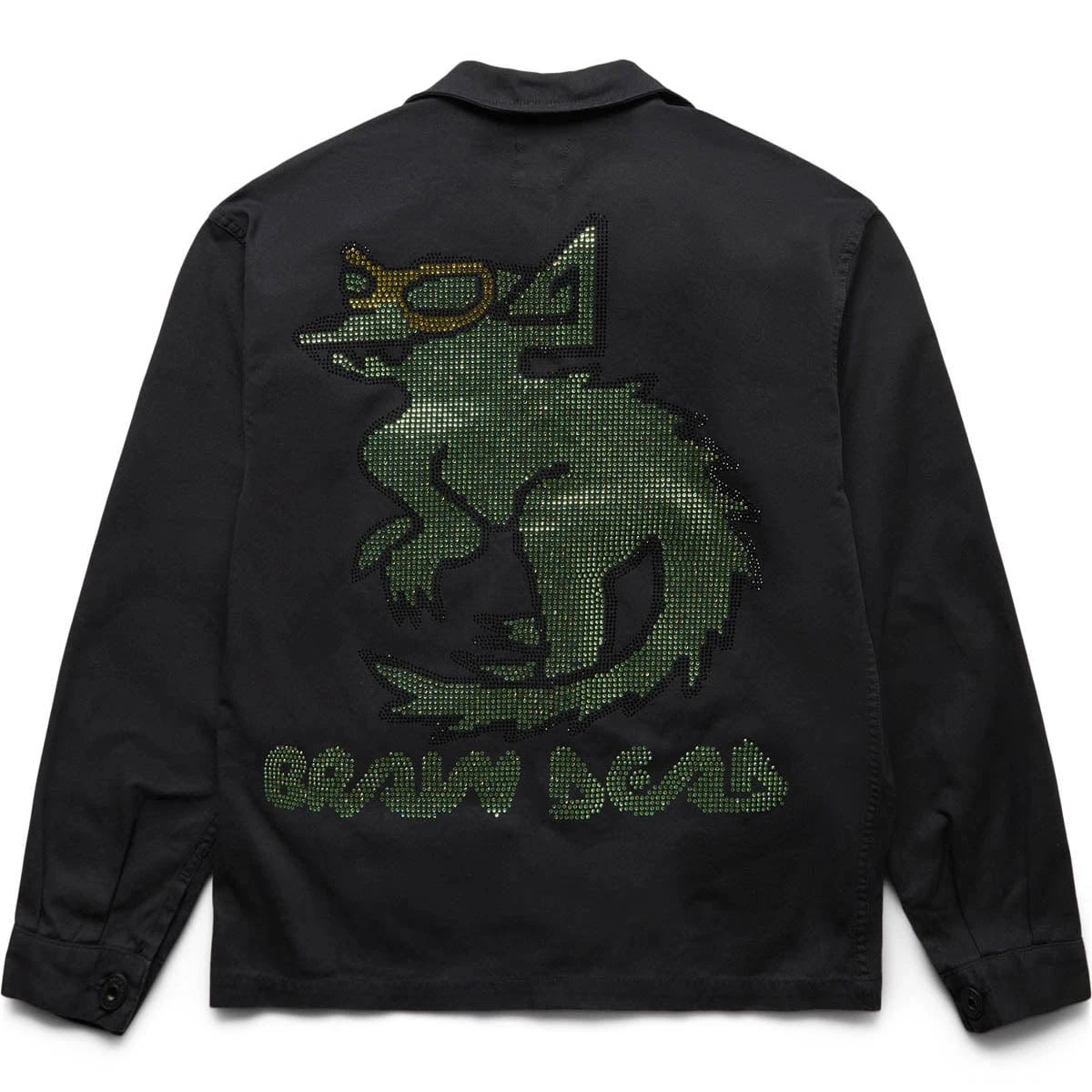 As a creative collective, Brain Dead is not based on one single person, nor one single idea. With its disruptive, graphic-led approach, the brand takes its cues from post punk, underground comics, skateboarding, and the spirit of subculture as a whole. With such an open design path, the brand is able to churn out innovative pieces, time and time again. Brain Dead presents a washed canvas chore coat with squirrel rhinestone applique on the back and front left breast pocket.