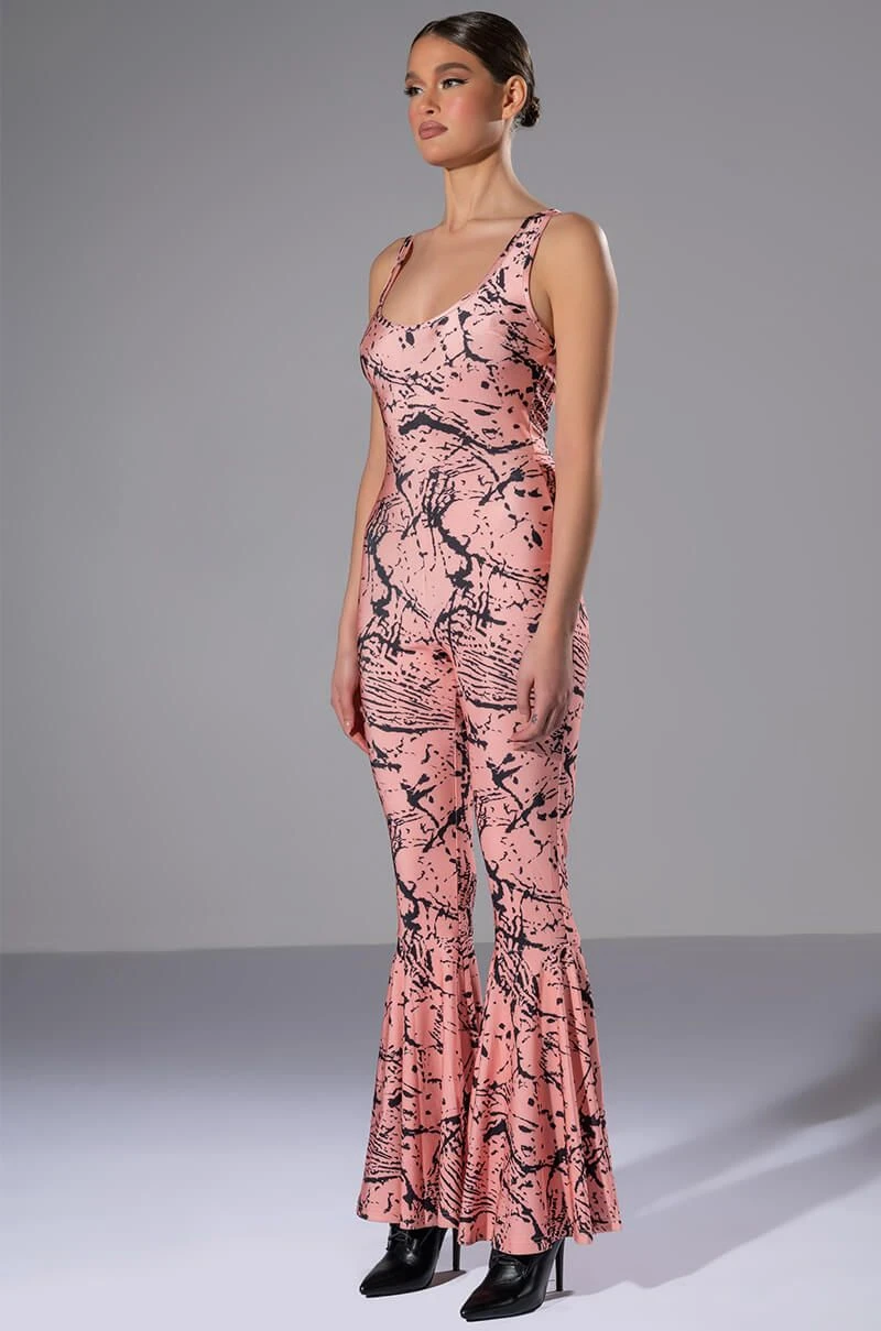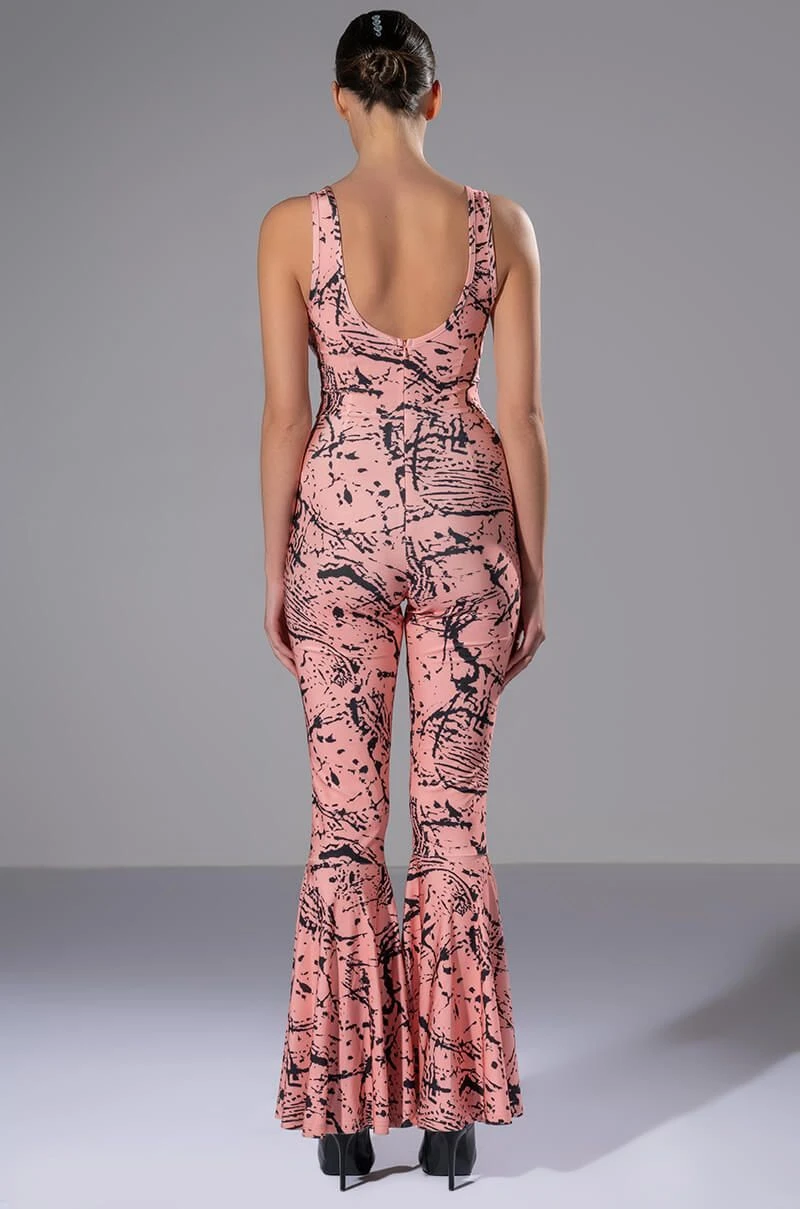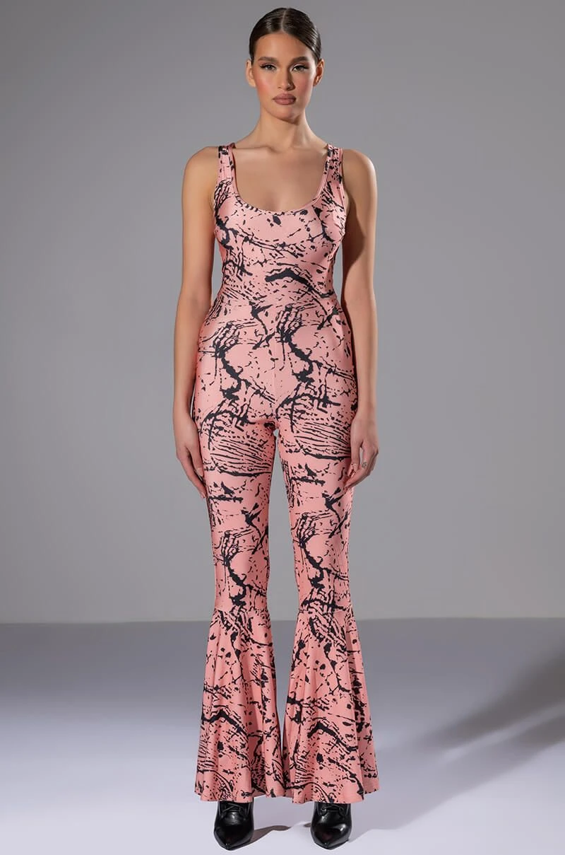 The AKIRA Label Bring The Funk Printed Flared Jumpsuit features a bodycon sleek and smooth construction, scoop neckline, and wide tank straps. Complete with extra flared bottoms, an abstract graphic print, and a concealed back zipper closure. Pair this jumpsuit with some groovy platform heels and you’re disco ready!
