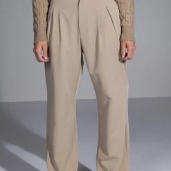 The AKIRA Label Certified Boss Wide Leg Trouser features a smooth, lightweight fabrication, a high rise waist, a wide fold over-inspired waistband, working belt loops, on seam slant side pockets, pleat front detailing, jetted back pockets, and a wide leg silhouette. Complete with a hook and eye clasp and zipper front closure. Pair this suited-up piece with a mock neck top and pumps to complete your tailored look.