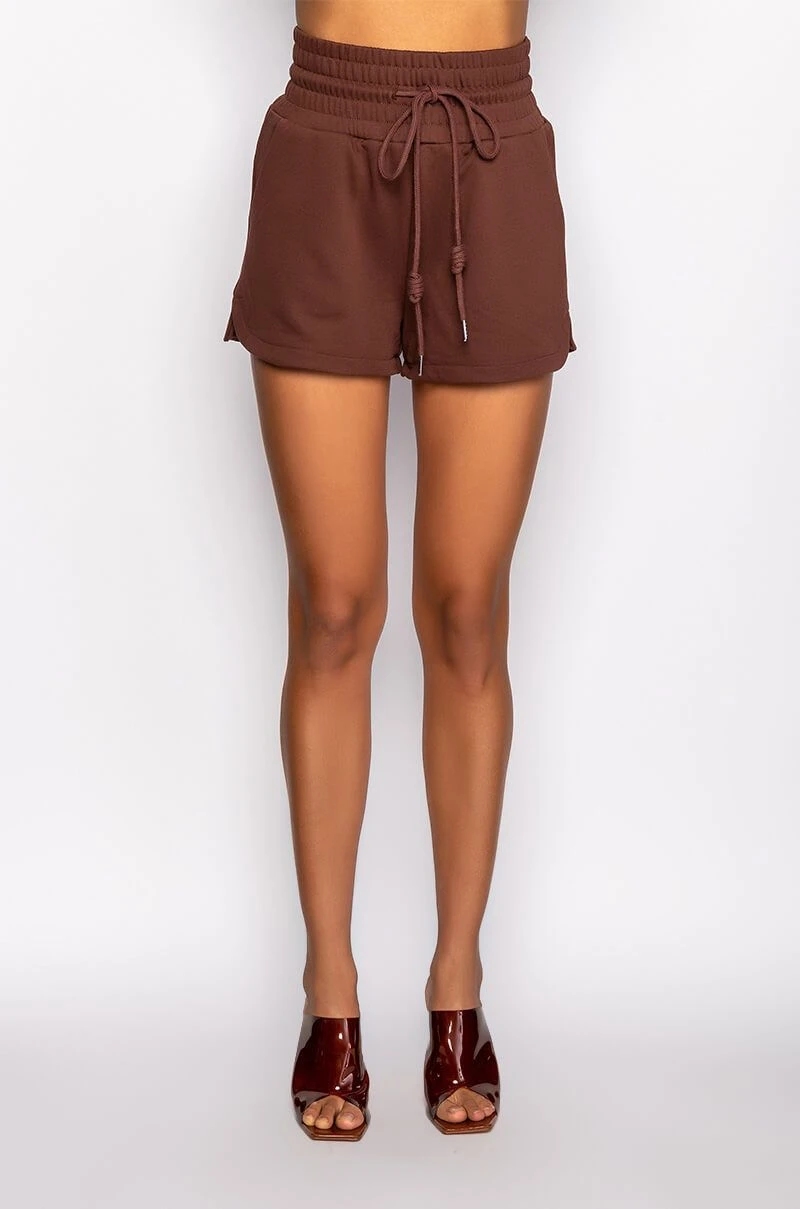The AKIRA Label Cici Sweatshort is made from a soft poly cotton blend fabrication and features a high rise waist, elasticated drawstring waistband, slant side pockets, and a dolphin short silhouette. Pair this piece with the matching AKIRA Label Cici Cropped Open Back Tshirt and platform sneakers for a fresh athleisure look!