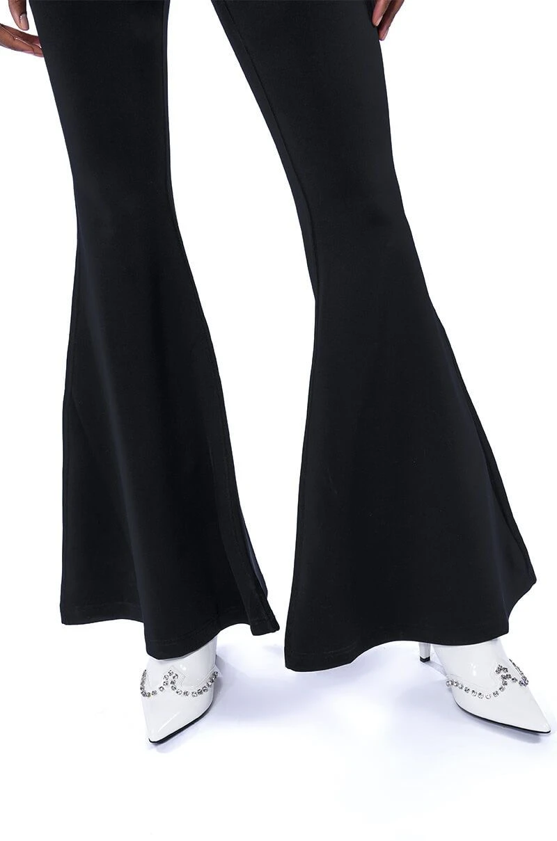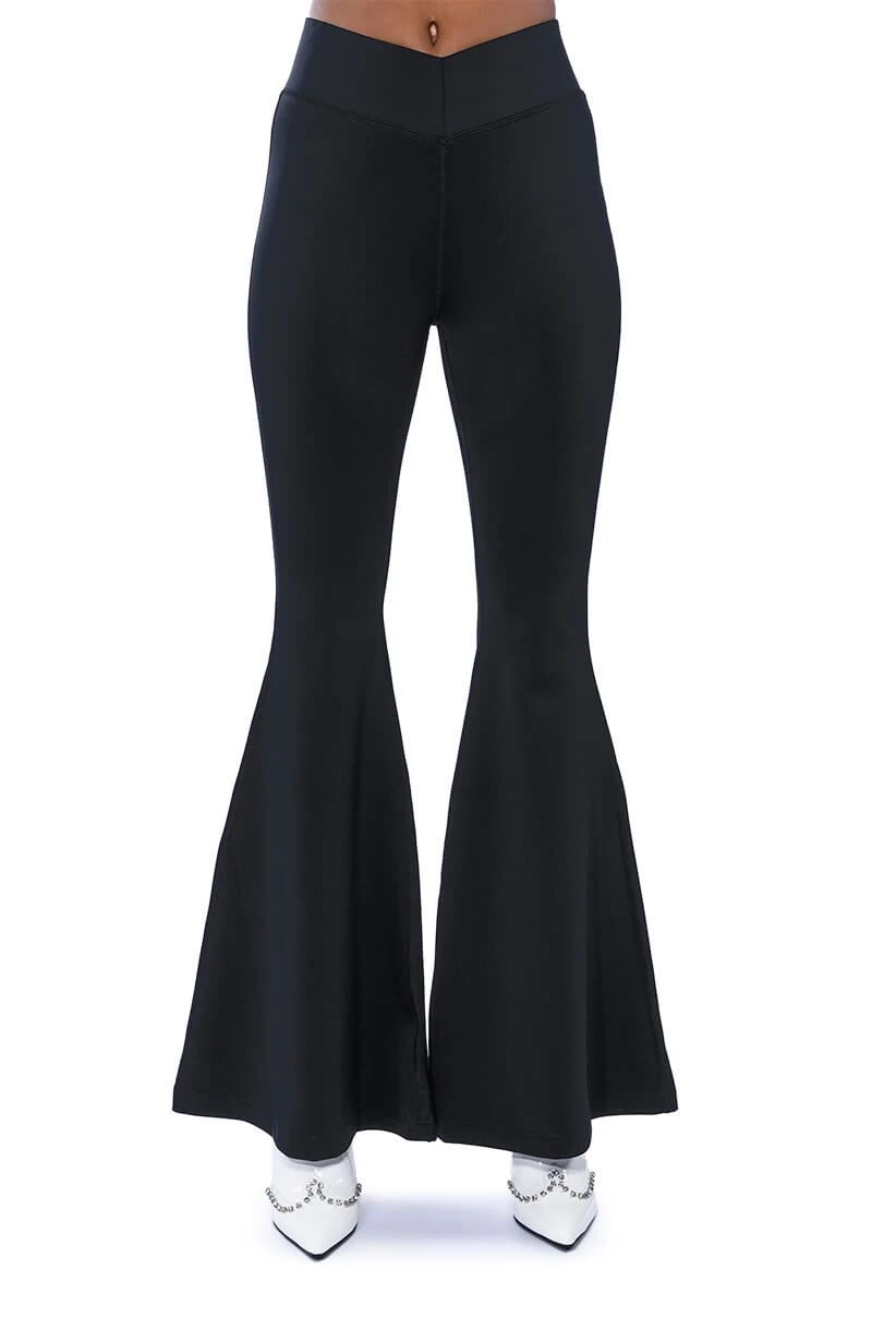 Stay cool, calm, and collected in The AKIRA Label Cool And Casual Flare Legging! These form-fitting bottoms are made from a sleek, stretchy base fabrication and feature a V-shaped, wide elastic waistband, a bodycon fit, and flared bottom hems. Complete with a pull-on fit. Style with a baby tee and chunky sneakers for an off-duty look.