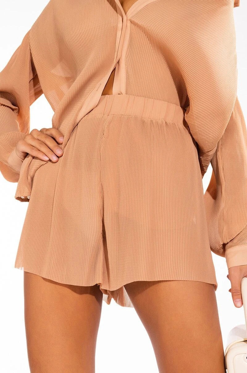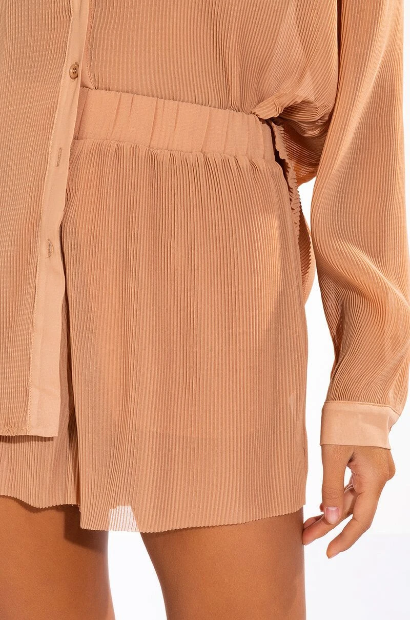 Do not disturb, major lounging in progress. The AKIRA Label DND Relaxed Short features a lightweight pleated fabrication,a high rise waistline, a mini short silhouette, and a shirred elastic waistband. Pairs well with the coordinating DND Relaxed Button Down and cozy yet chic mules..