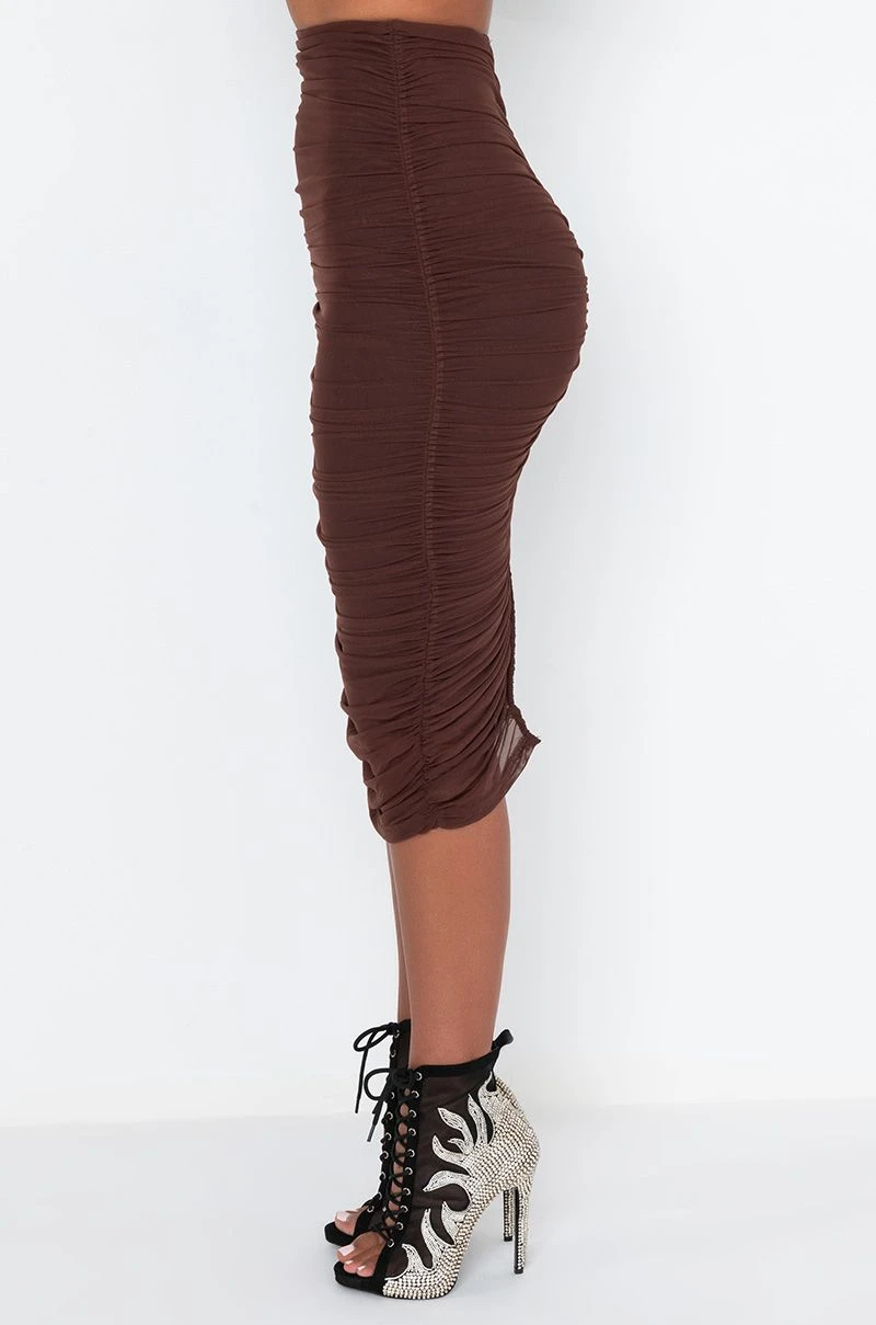 DRAMA FREE CINCHED MESH MIDI SKIRT