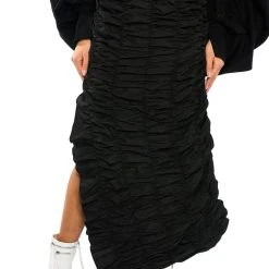 Steal the show with The Encore Scrunched Slit Maxi Skirt! This form-fitting maxi length skirt is made from a polyester and cotton fabrication, featuring a smocked elastic waist line, all over ruched detailing, a tonal side zipper closure, and a thigh-high scrunched side split. Pro tip: switch the side split and zipper to the back for a sexy ruched look! Pair this piece with a cropped top and chunky heeled boots to complete your effortless look.