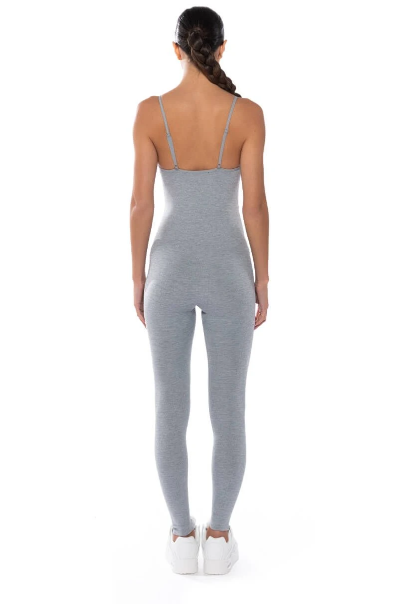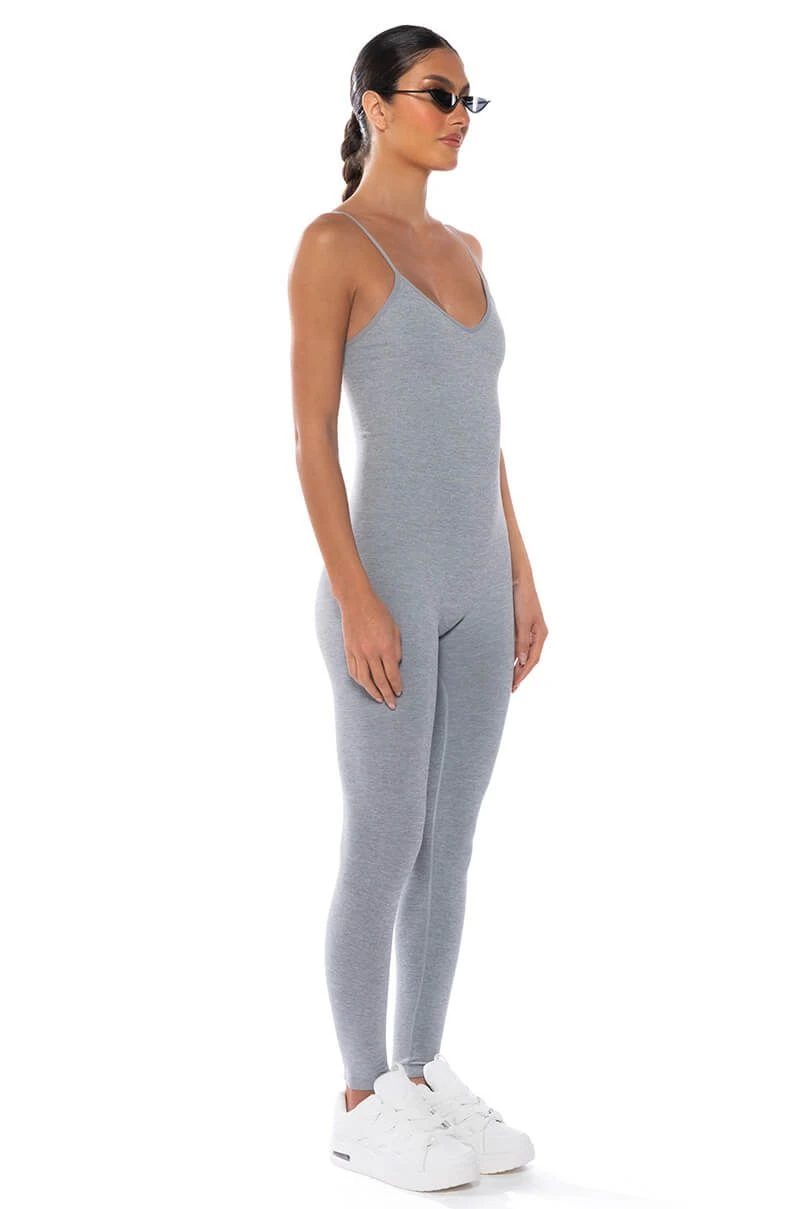 The AKIRA Label Everyday Playsuit features a curve-hugging, soft stretch knit fabrication, a V-neckline, slim, adjustable tank straps, and a pull-on silhouette. Complete with attached bodycon legging pants. Style this cozy piece with an oversized blazer and chunky sneakers for a chic athleisure look!