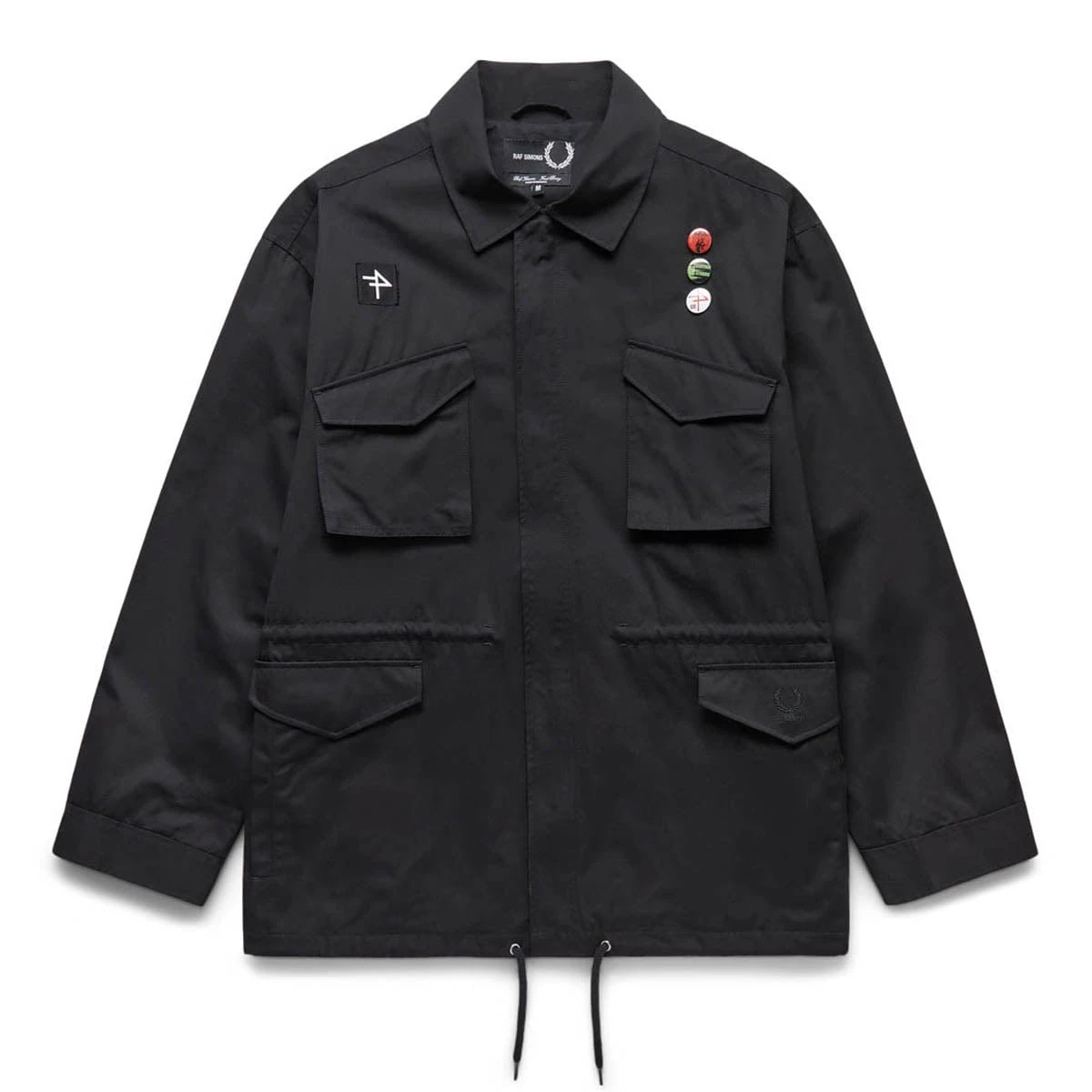 The Military Jacket from the collaboration between Fred Perry and Raf Simons is made of durable cotton gabardine.