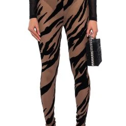 Trust your intuition with The AKIRA Label Girl’s Instinct High Rise Legging! This fierce piece is made from a sheer mesh fabrication and features a velvet-embossed tiger print, a high rise waist with an elastic waistband, a pull-on silhouette, a skinny leg design, and an attached inner opaque panty with a cheeky bottom fit. Sizes S-XL: Pair this piece with the coordinating AKIRA Label Girl’s Instinct Duster to complete your look.