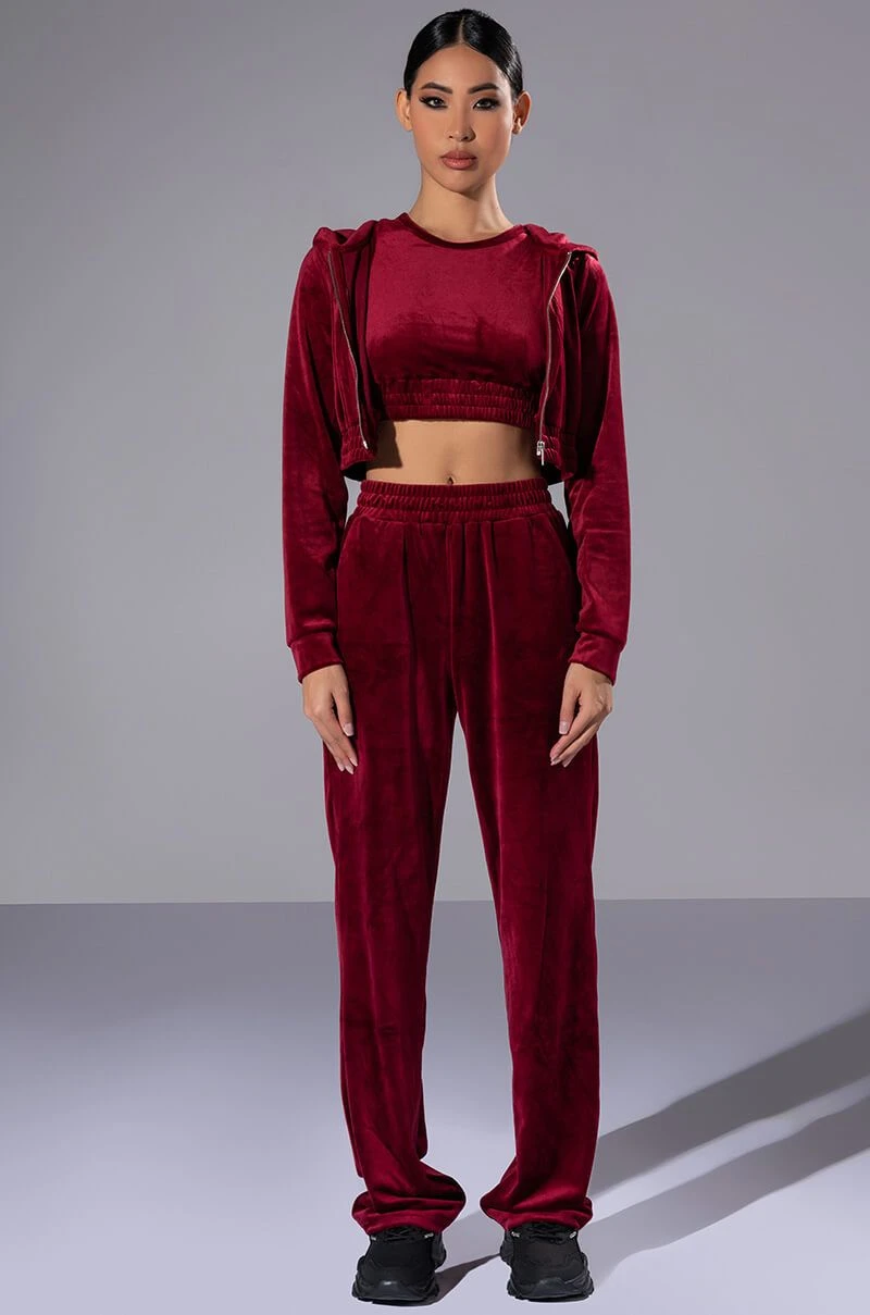 The AKIRA Label Gretchen Zip Up Cropped Hoodie is part of a quintessential athleisure set, and is made from a soft velour fabrication and features a crew neckline, a sleeveless silhouette, ribbed elastic bottom hem, and a pull on fit. Pair this lush piece with the matching The AKIRA Label Gretchen Zip Up Cropped Hoodie, Gretchen Straight Fit Joggers, and chunky sneakers to complete your fetch look.