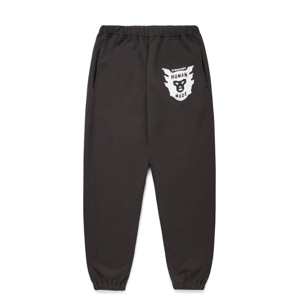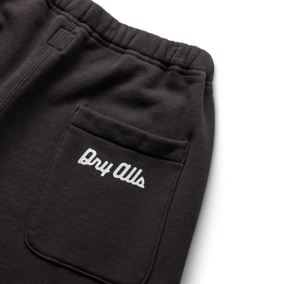 The Sweat Pants in a washed Black cotton features printed graphics on the front left hip and back right pocket while an elastic waist, ankle cuffs, and side pockets round out the design.Â