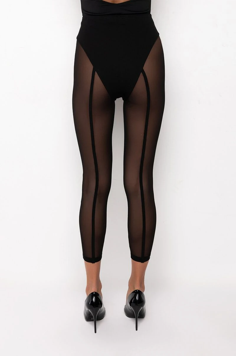 Sheer genius. The AKIRA Label I Am The View Sheer Legging features a high rise elastic waistline, a sheer mesh fabrication, front and back seam detailing, and panty-like panel detailing. Pair with a sleek bodysuit and studded biker jacket for a look worth taking in.