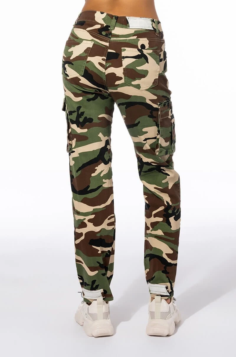 The AKIRA Label Invincible Camo Pants are made from a stretchy cotton fabrication and feature a camo print, a high rise waist, working belt loops, a classic five-pocket design, a skinny leg fit, Velcro flap cargo side pockets, and a button and zipper front closure. Pair this piece with the coordinating AKIRA Label Invincible Camo Collared Halter Top and combat boots to complete your look.
