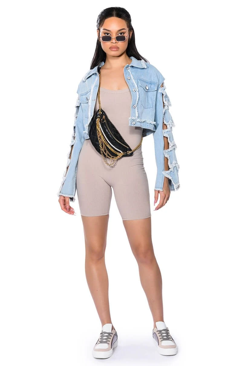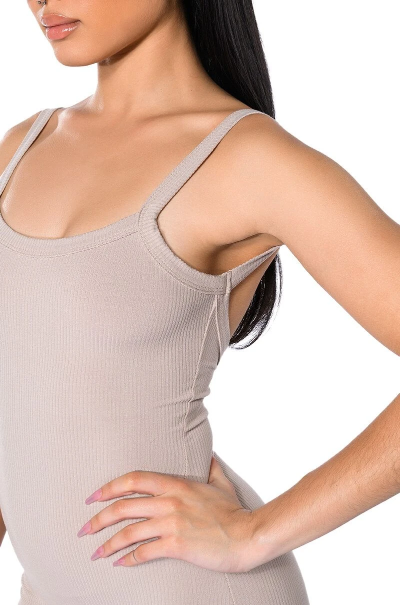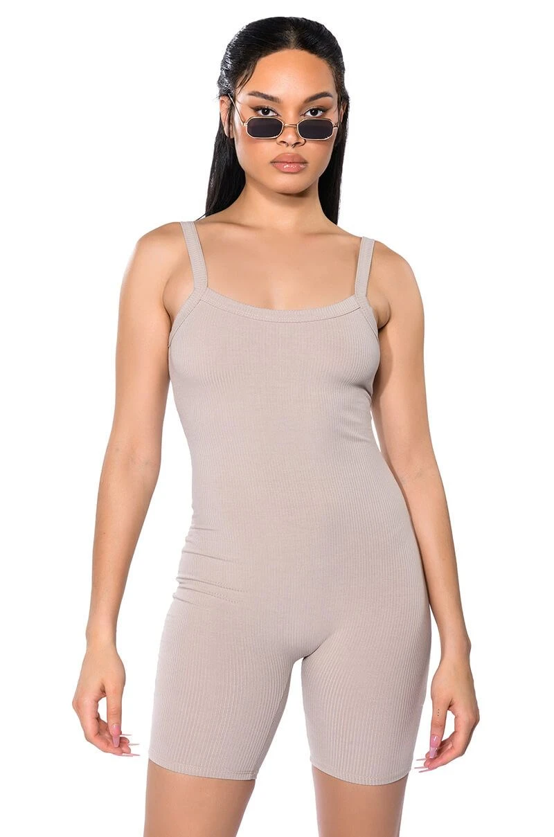 The AKIRA Label Jenna Classic Scoop Back Romper is made from a stretchy ribbed knit fabrication and features a scoop neckline, tank straps, a scooped open back, and a pull-on silhouette. Style this cozy romper with an oversized shacket and chunky sneakers for a chic athleisure look!