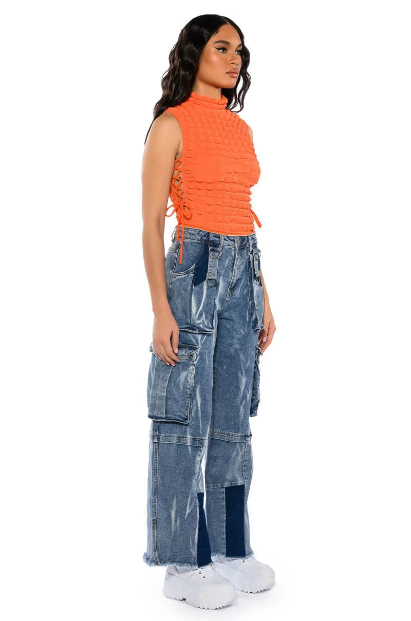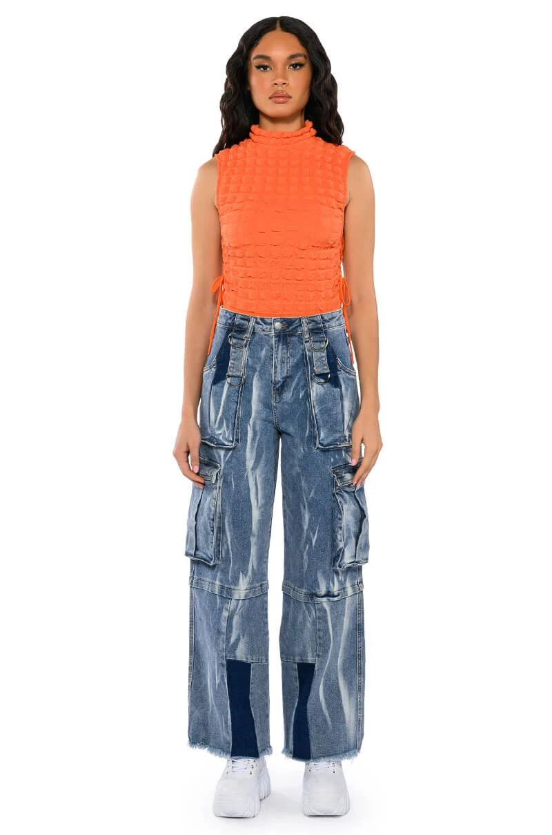 – Self: 95% Polyester 5% Spandex, Contrast: 90% Polyester 10% Spandex