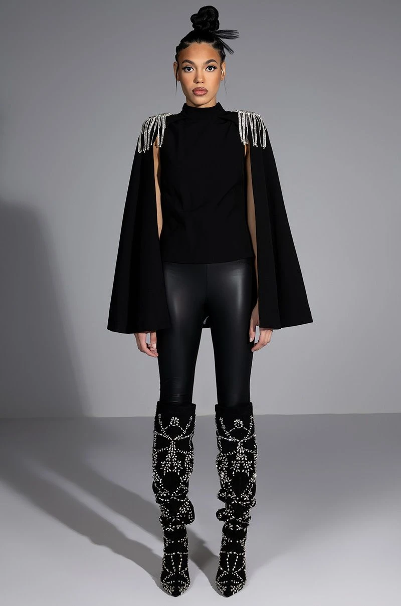 – 22” shoulder to blouse hem, 26” total cape length approx
