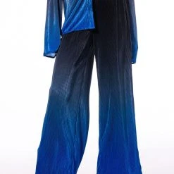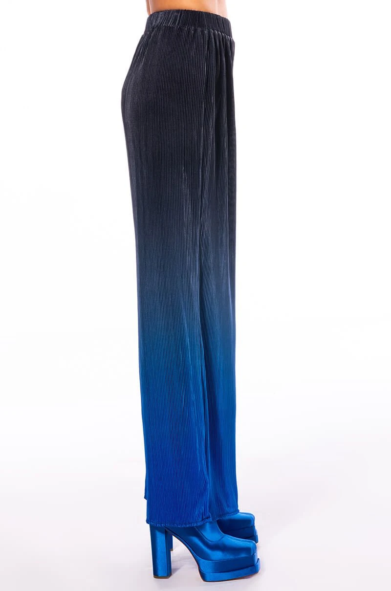 Night moves. The AKIRA Label Midnight Stunner Palazzo Pant is a luxe pleated satin bottom featuring a high rise waistline, an elastic waistband, wide palazzo pant legs, ombre dip dye detailing, and a pull on fit. Pair this piece with the matching AKIRA Label Midnight Stunner Ombre Plisse Button Down and mules for an effortlessly chic look!