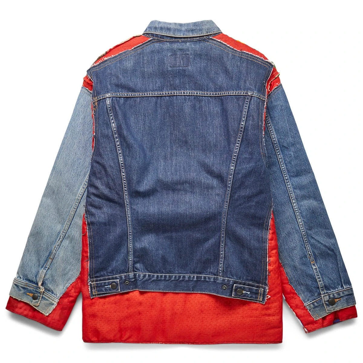 The Jean Jacket & Rug is a reversible jacket made with reworked denim and quilted rug fabric.