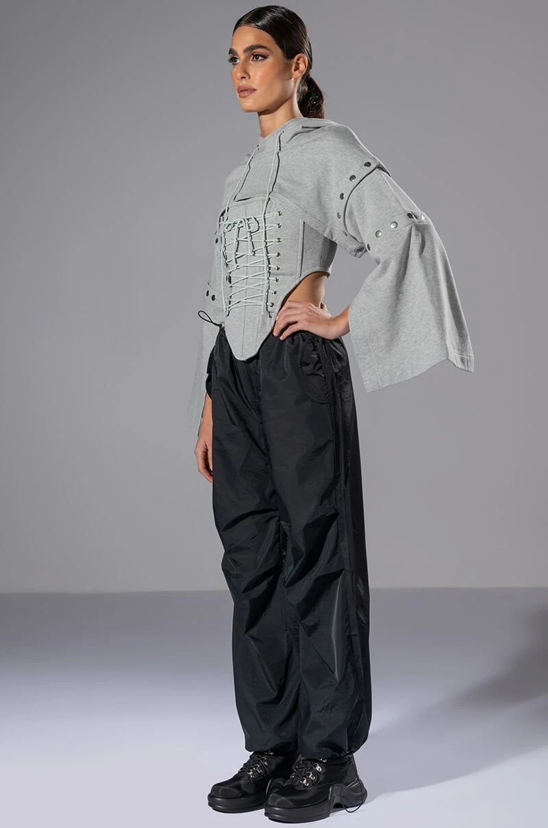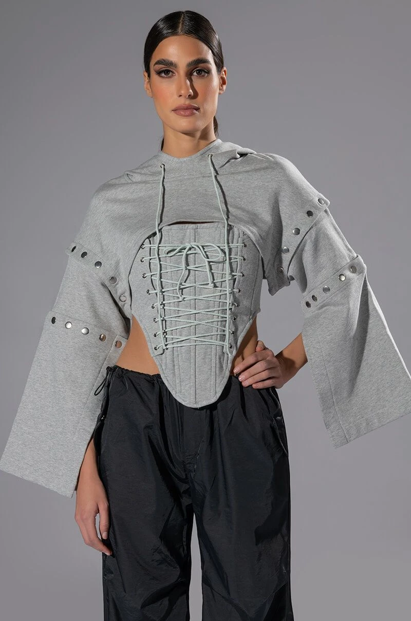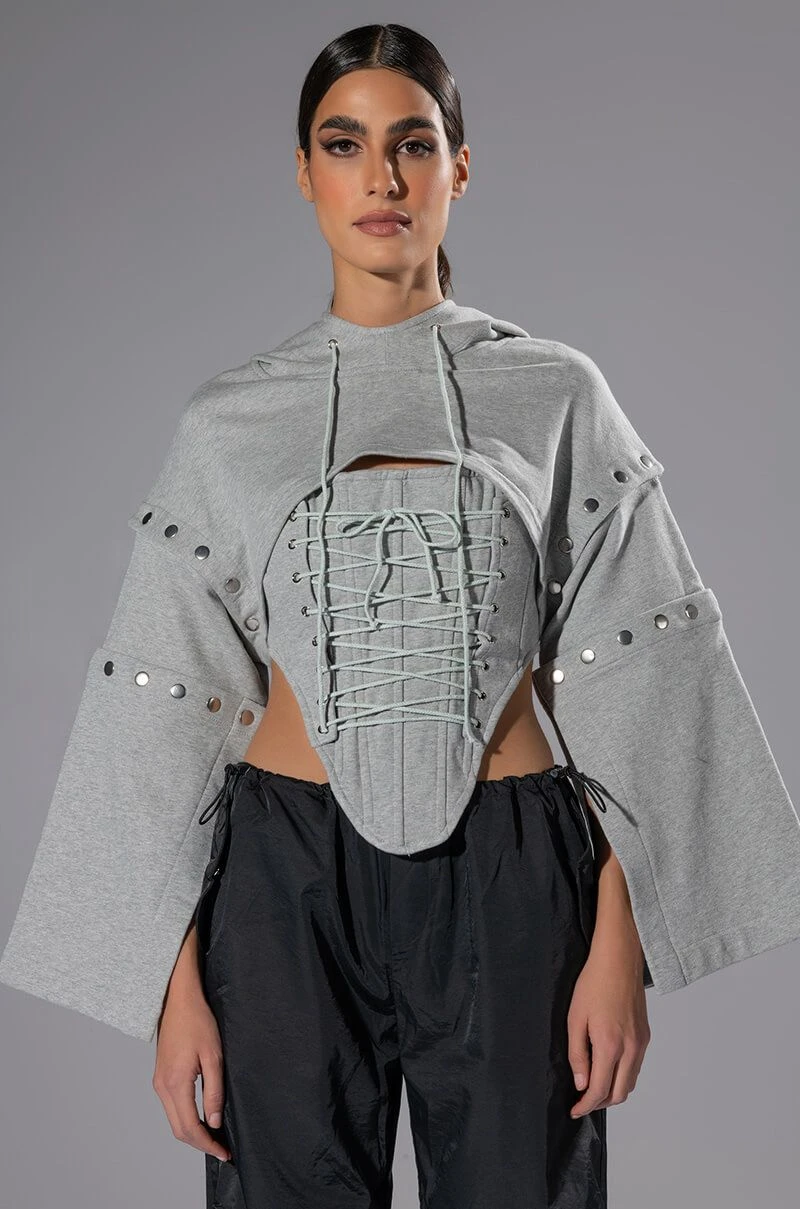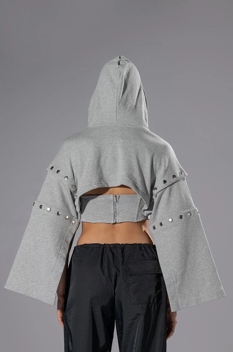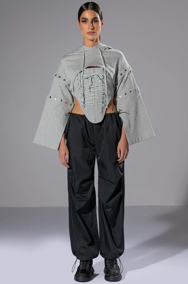 – 13.5” Shoulder to Hem, 19.5” Convertible Sleeves (Hoodie)
