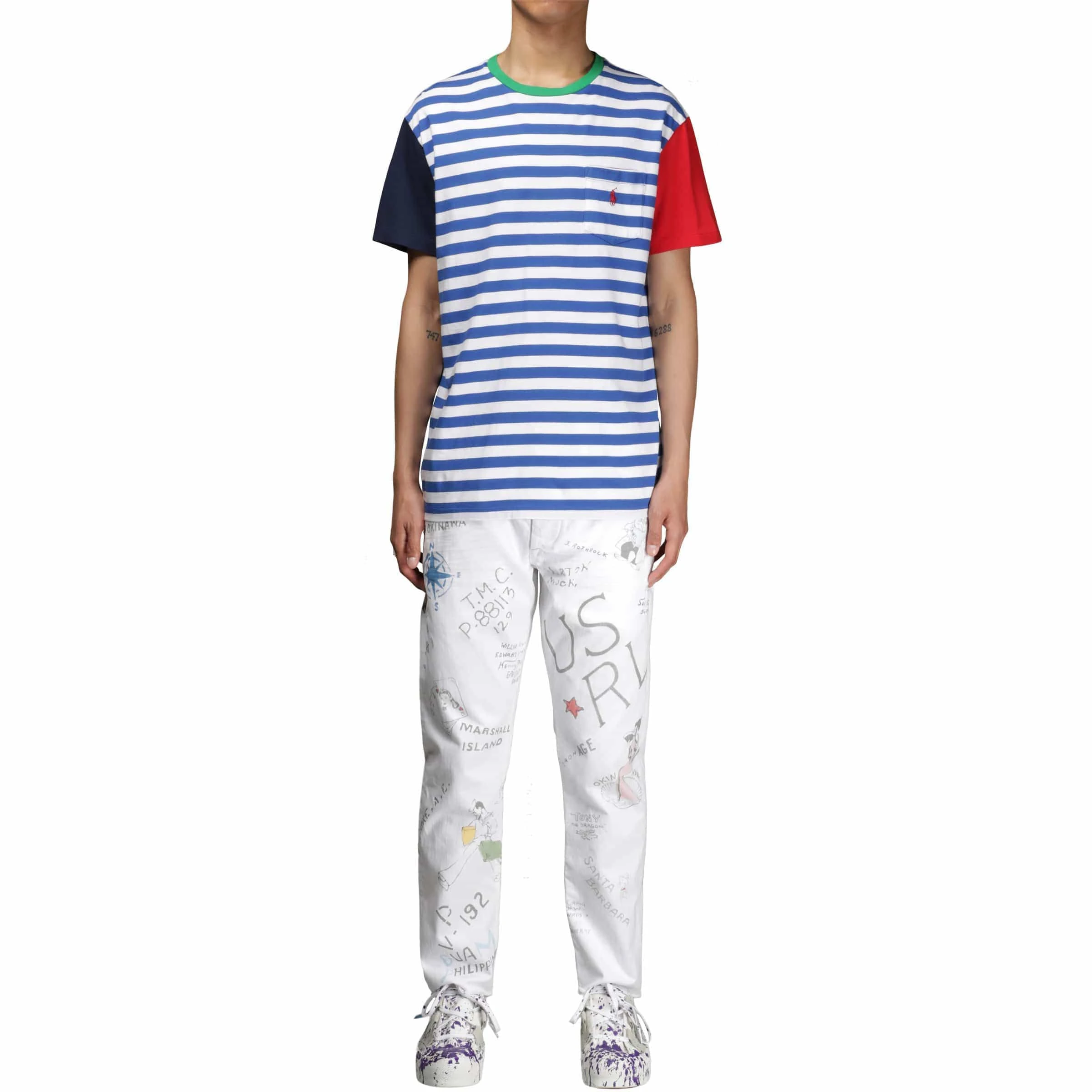 During the 1930s and 40s, turning garments into something of a wearable yearbook was a popular way to commemorate occasions like graduation and military service. Polo puts a distinctly nautical stamp on this convention for Spring/Summer, with a classic, white chino featuring U.S. Navy inspired artwork.Â