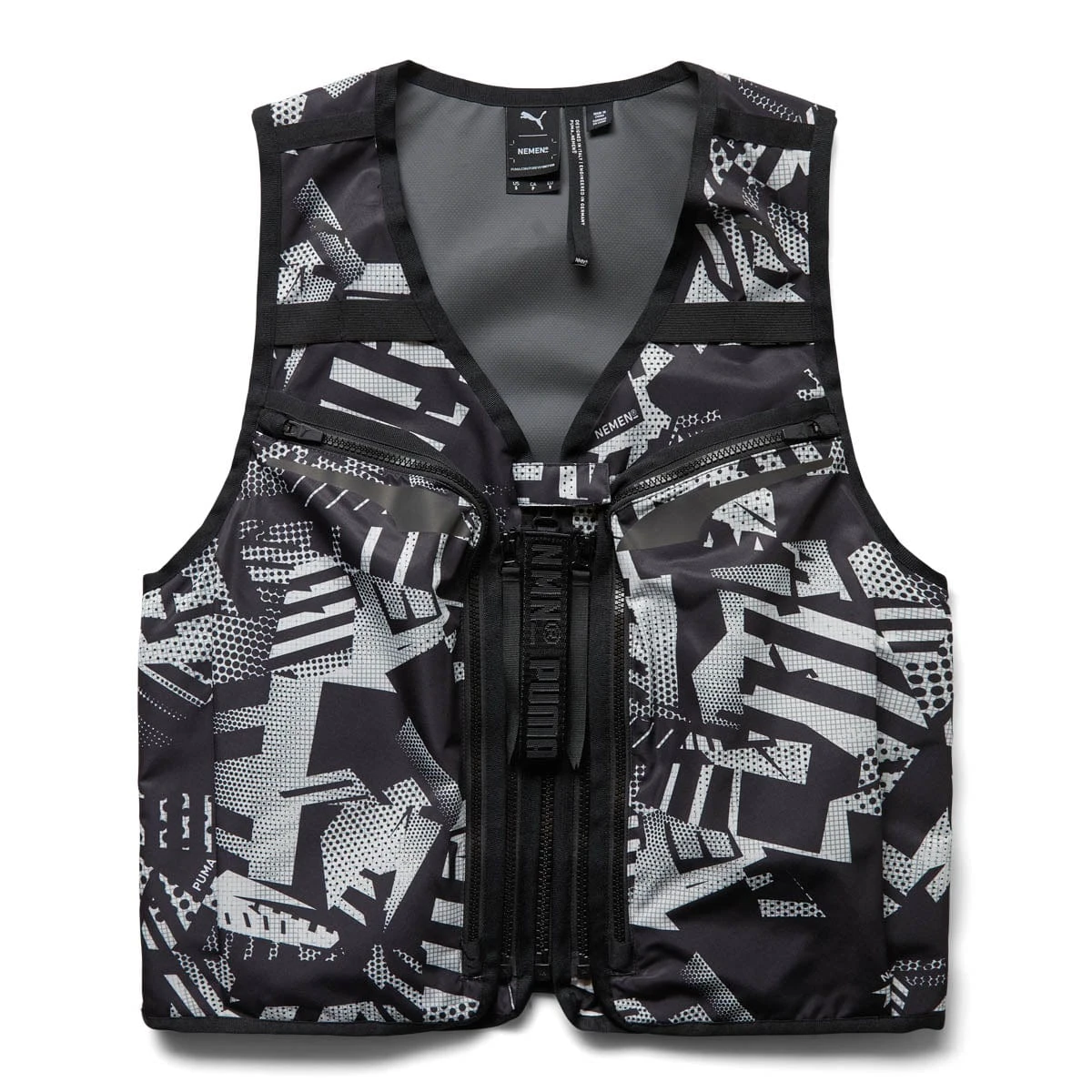 Italian palindromic techwear firm, NemeN, pairs up with Puma for a collection that’s just in time for winter. Leaning into the white and gray slush of the sidewalk, street, and sky, the collection is built around rigidly abstract prints full of shadows, shapes, and a graffiti-like spontaneity acting as a snowy camo as you face the cold days ahead. From parkas, vests, and down jackets to winterized pants, gloves, and balaclavas, NemeN and Puma have it all figured out.