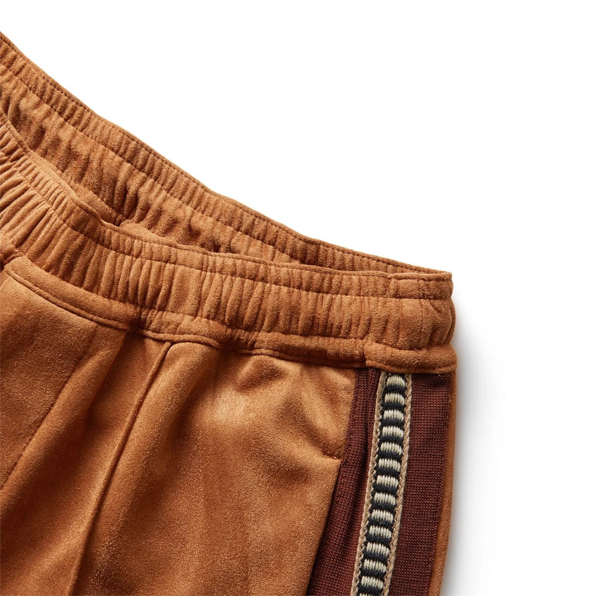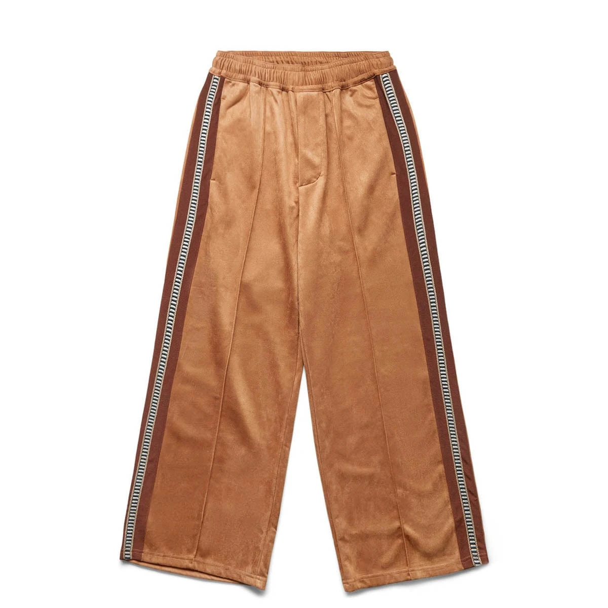 Not your average pair of track pants. Sasquatchfabrix presents the Faux Suede Flare Silhouette Track Pants in camel.