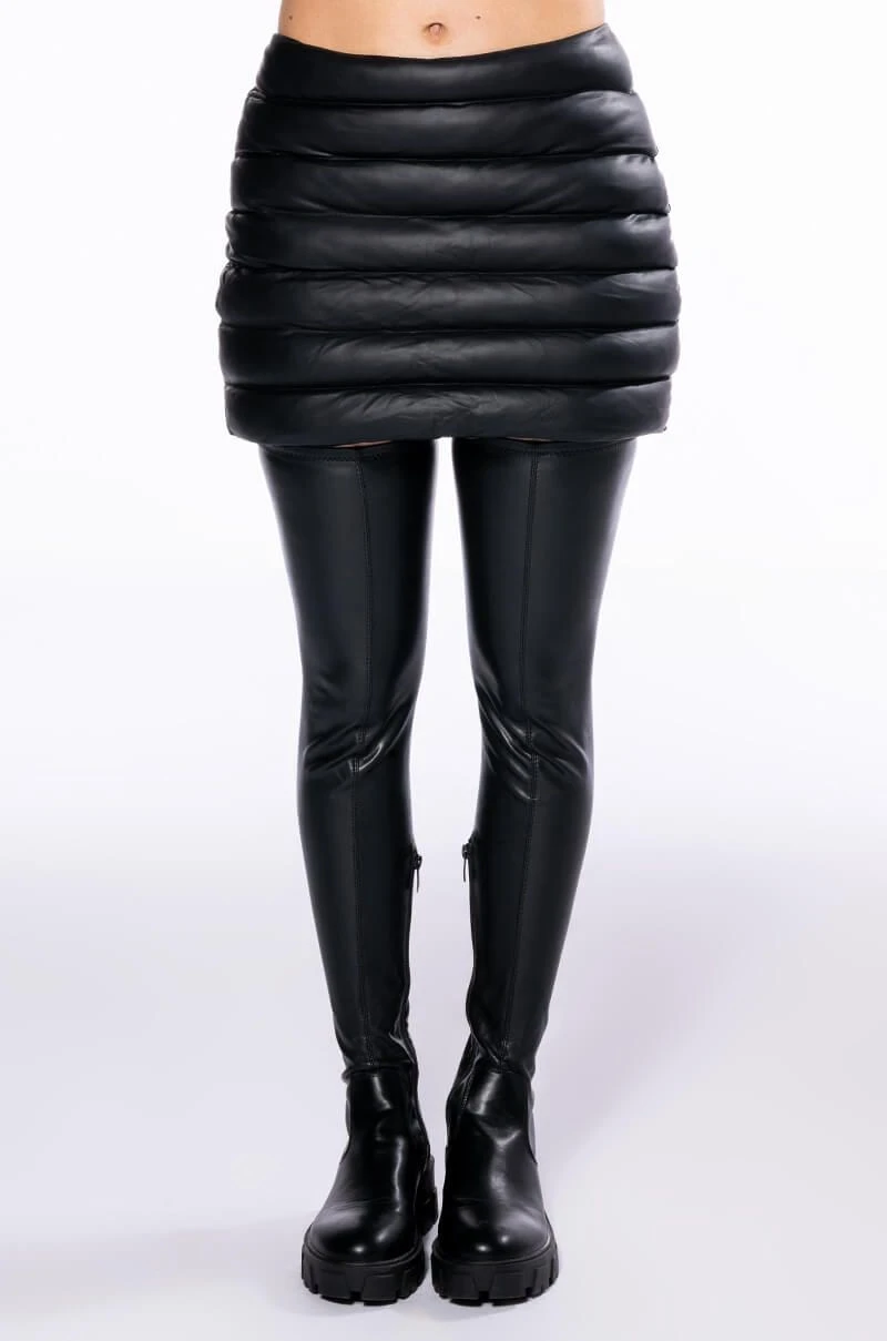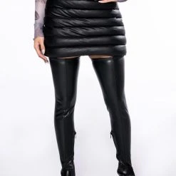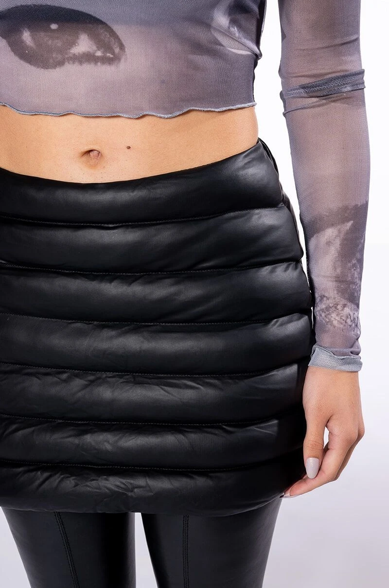 The AKIRA Label Star Chasing Mini Skirt in Black is a futuristic piece featuring a soft yet sleek fabrication, a quilted puffer front, a thin elastic back band, a sexy ultra-mini silhouette, and a back zipper closure. Pair with an oversized band tee or a chic white cropped tank to complete your out of this world ensemble.