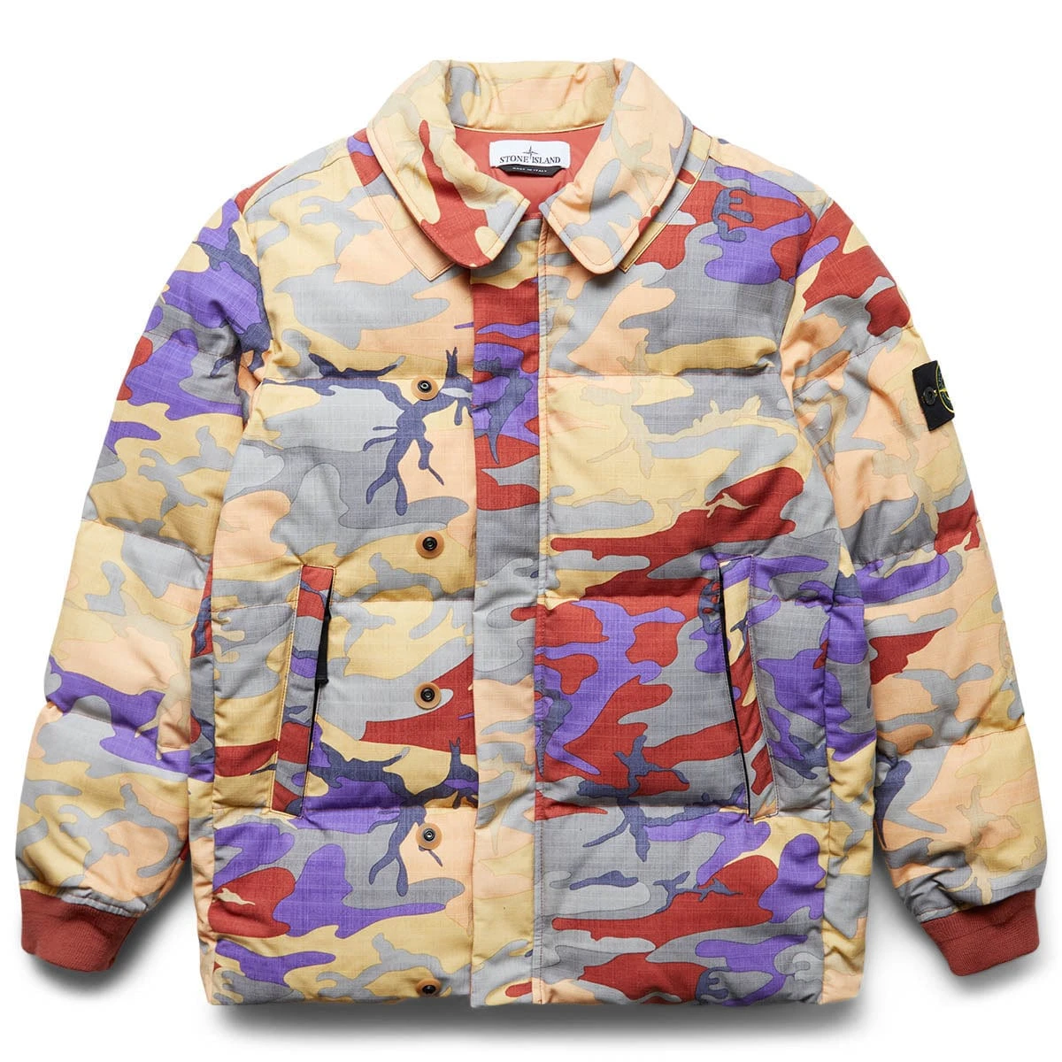 Down jacket made in a nylon ripstop printed with the revisited archival printing pattern of the Ice Jacket Camouflage ‘090.