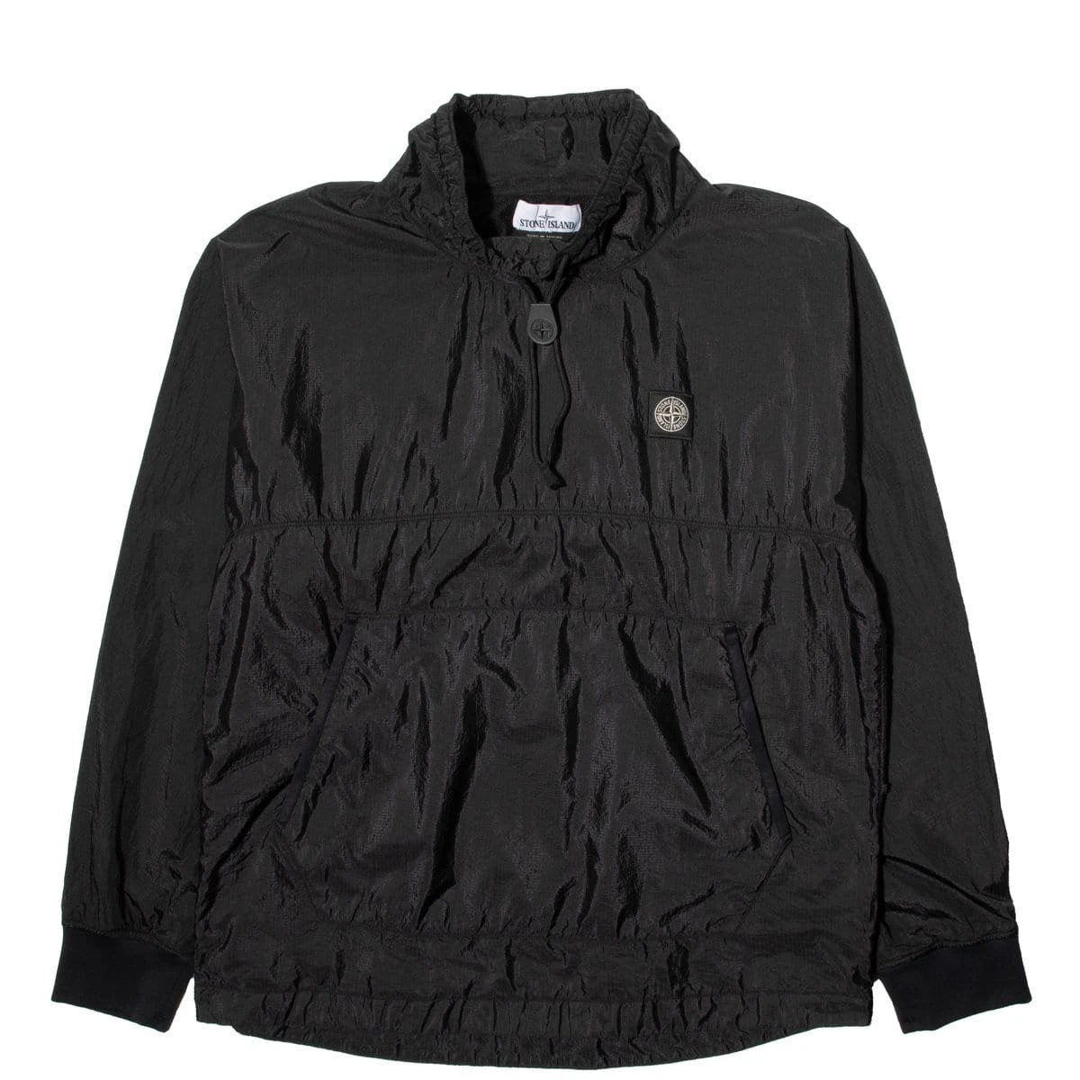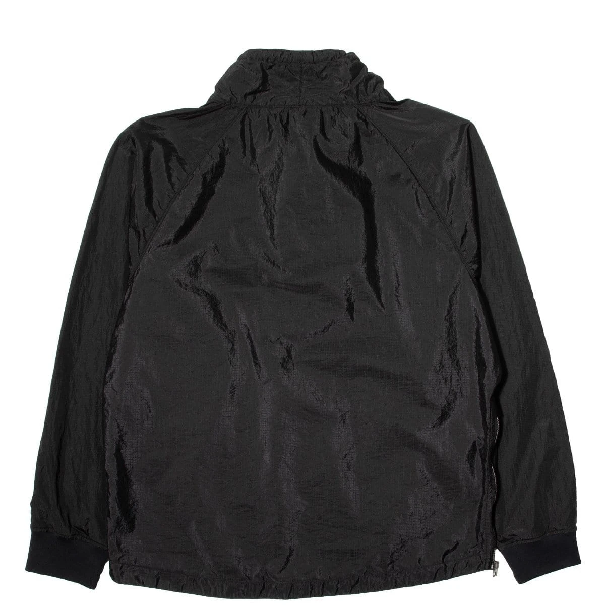 NYLON METAL RIPSTOP: Anorak in Nylon Ripstop. The trilobate structure of the nylon yarn, with its gray weft and white ready-to-dye warp colors, is the basis for the distinctive metallic and tonic sheen of Nylon Metal, one of the most versatile fabrics born out of STONE ISLAND’s textile research. Garment dyed with an elaborate double dye procedure. Fastening zippers are engineered to be colored by the garment dye procedure. Nylon mesh lining.