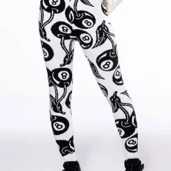 The AKIRA Label Sweet Luck Sweater Legging is a cozy loungewear piece featuring a knit base, a high waist rise, an elastic waistband, bodycon fit, ribbed knit hems, and an eight ball and cherry hybrid print. Pair with the coordinating AKIRA Label Sweet Luck Pullover Sweater to complete the look.