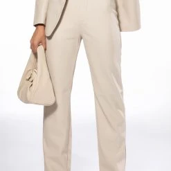 ¡Con mucho amor! The AKIRA Label Te Quiero High Rise Vegan Leather Straight Leg Pants In Ivory are a stretchy vegan leather pant featuring a soft fleece lining, belt loops, a high rise waistline, two back pockets, and wide leg silhouette. Complete with a front button and zipper closure.