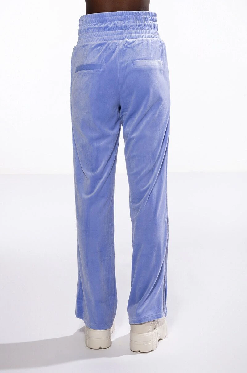 The AKIRA Label The Jet Setter Velvet Wide Leg Jogger is made from a plush velvet fabrication and features a high rise waist, a wide ruched elastic drawstring waistband, column stitch detailing, mock back pockets, and a wide leg silhouette with sheer paneling. Pair this piece with the matching AKIRA Label The Jet Setter Velvet Cropped Sweatshirt to complete your look.
