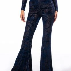 The AKIRA Label Tropic Like Its Hot High Rise Flare Pant is a high rise flare legging featuring a sheer mesh base, a velvet burnout swirl print design, a wide elastic waistband, and a pull on fit. Pair with the coordinating AKIRA Label Tropic Like Its Hot Long Sleeve Mock Neck Bodysuit for a complete look.
