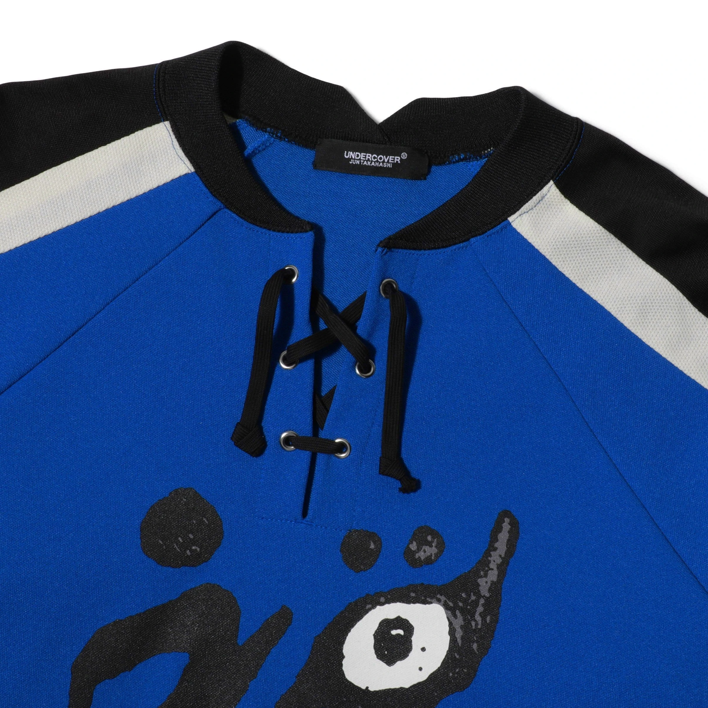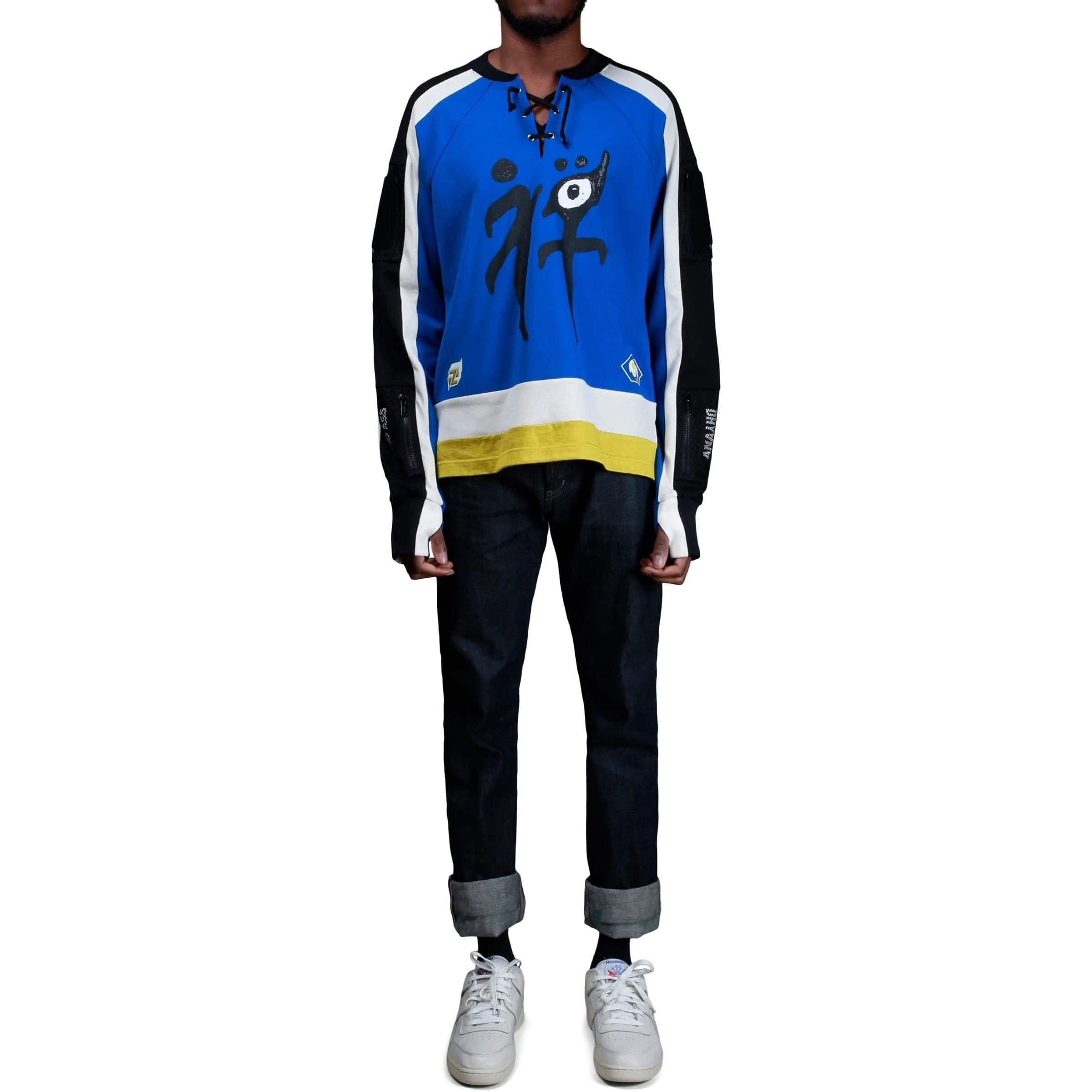 This lace up hockey jersey style sweatshirt is a bit reminiscent of the St. Louis Blues. So, watch out for this gang, because they probably like to fight dirty then.