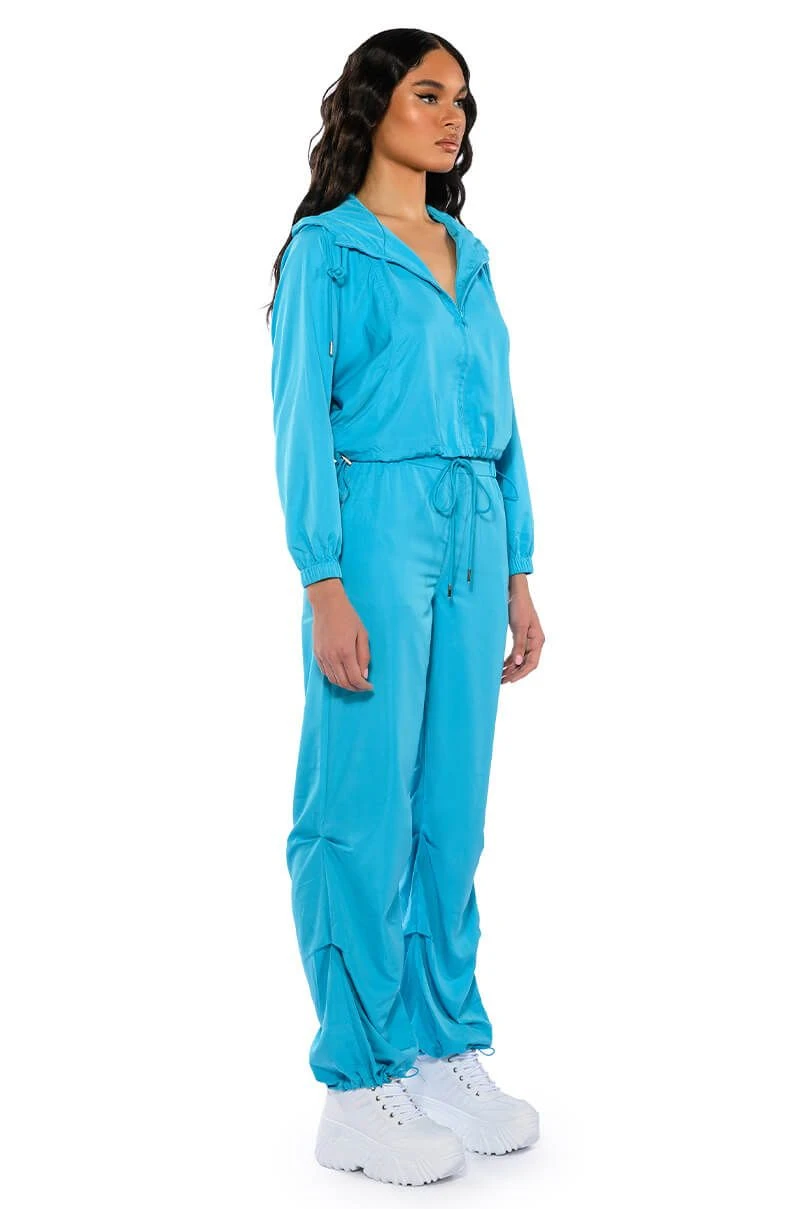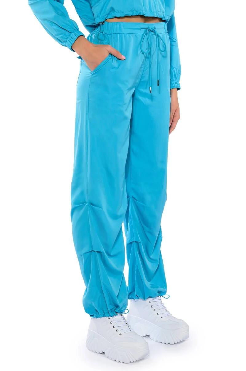 Turn on airplane mode with The AKIRA Label Vacay Mode Drawstring Jogger! This quintessential athleisure piece is made from a sleek, lightweight fabrication and features an elastic drawstring waistband, slant side pockets, working velcro back pockets, and a parachute pant silhouette. Complete with a high waist and adjustable drawstring bottom hems. Pair this piece with the matching AKIRA Label Vacay Mode Zip Up Sweatshirt and chunky sneakers to complete your look.
