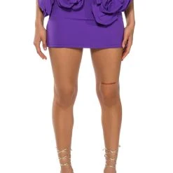 The AKIRA Label What Its Like Floral Applique Mini Skirt features a stretchy, smooth fabrication, a sexy mini silhouette, and a back zipper closure. Complete with three-dimensional floral applique detailing. Pair with the coordinating AKIRA Label What Its Like Floral Applique Floral Bralette.