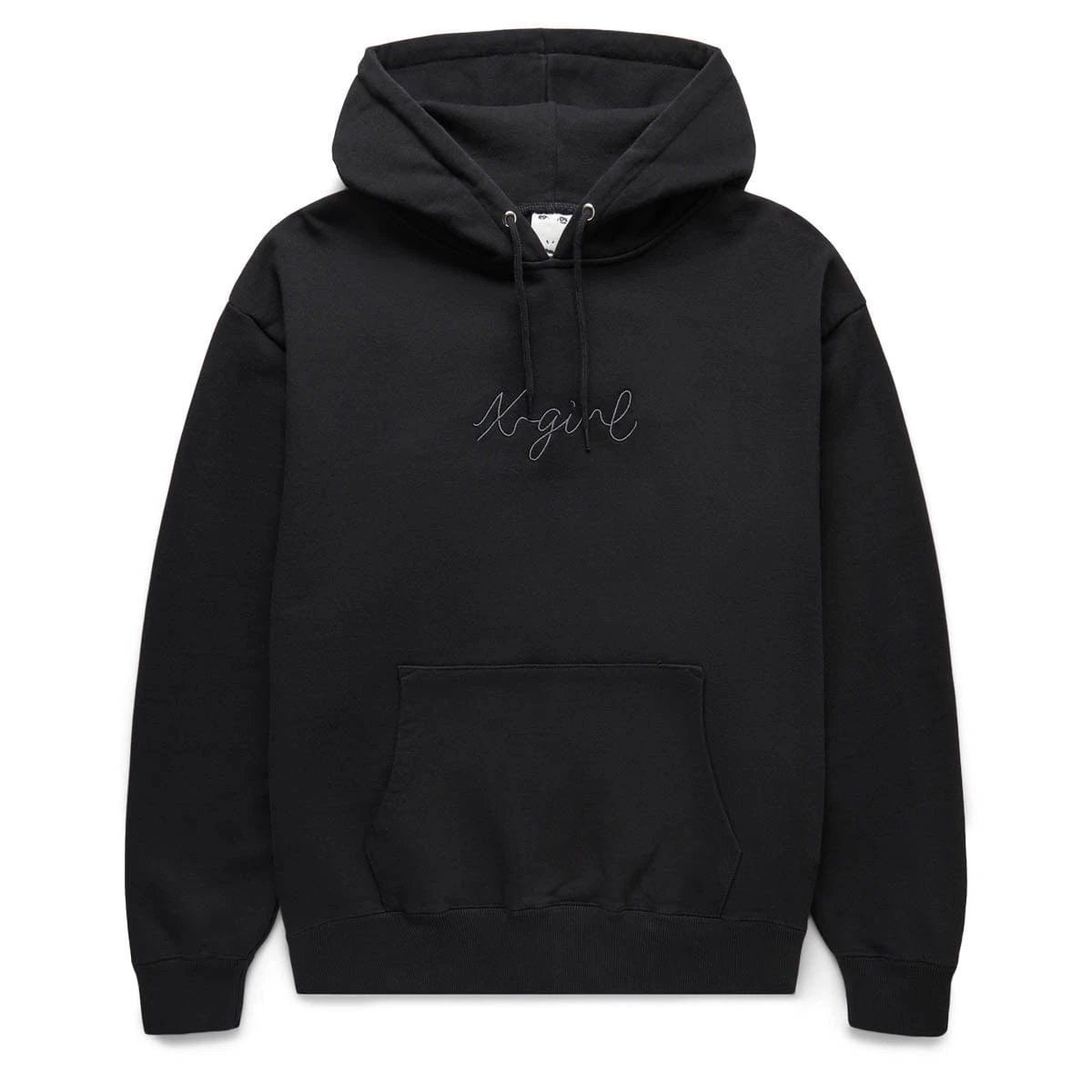 This classic hoodie features a 3D-embroidered X-girl script across the front and Face logo on the back.